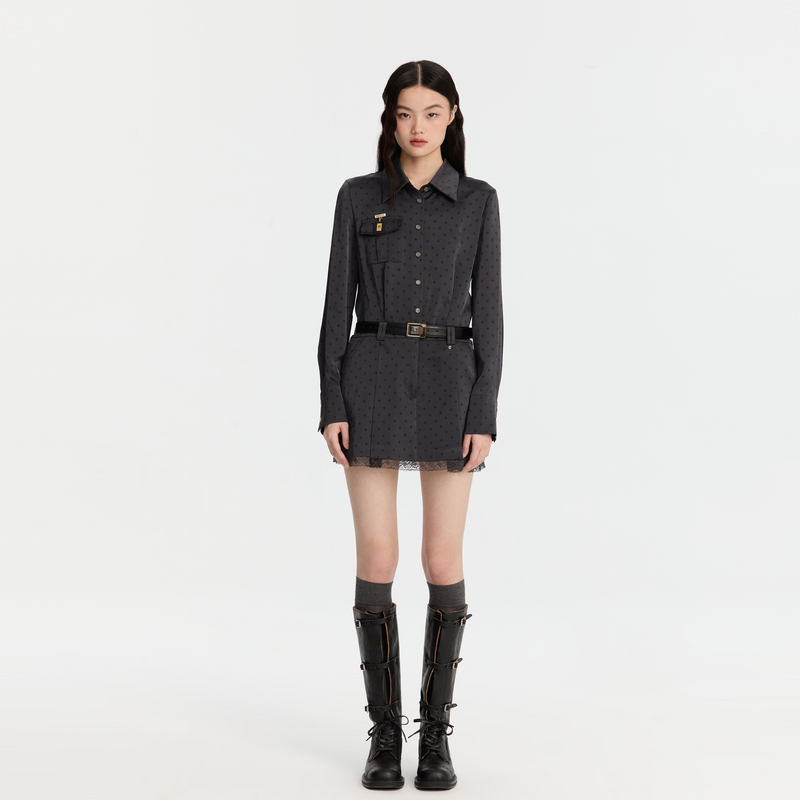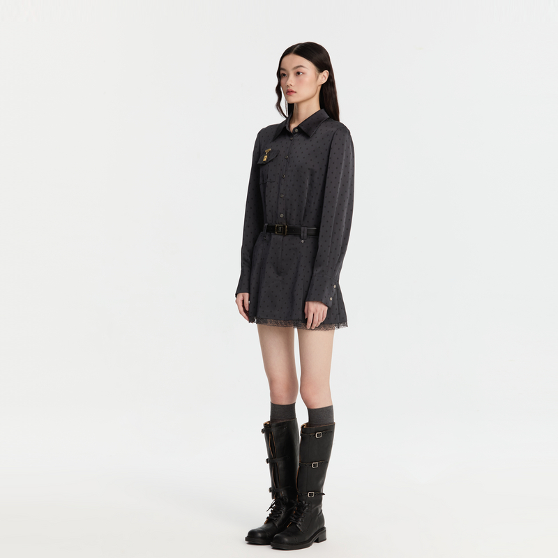 REVAN芮范新品设计师款酷感波点印花连衣裙RM91101272
