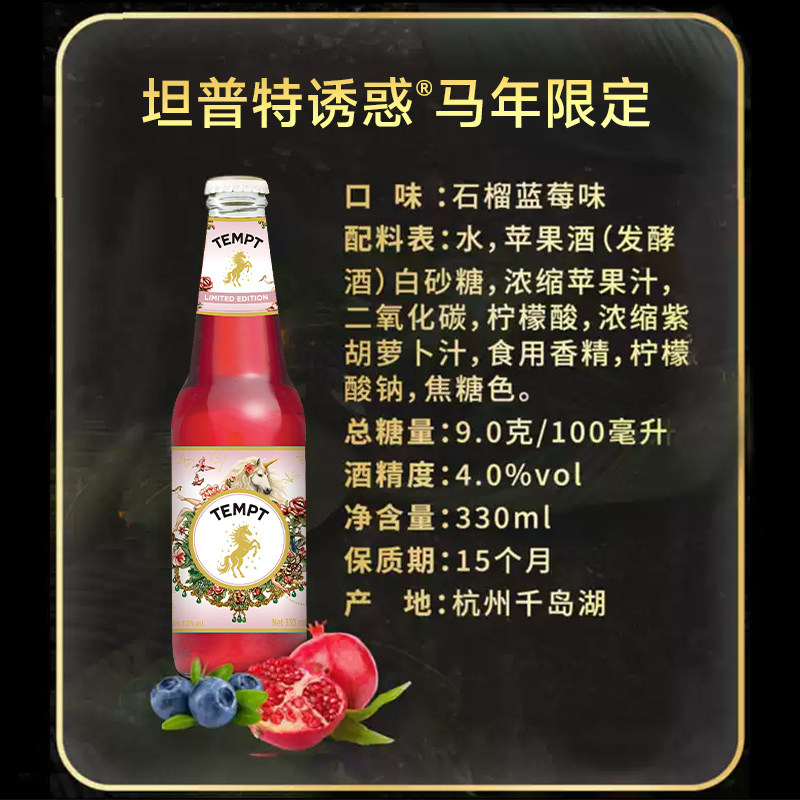 TEMPT甜酒西打水果酒微醺低度诱惑马年限定年货礼盒8瓶石榴蓝莓味