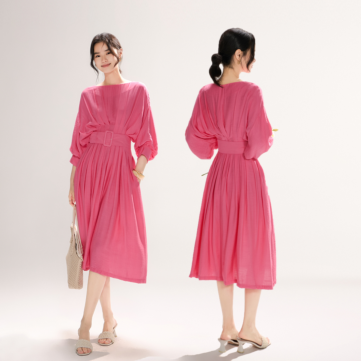 法式复古浪漫连衣裙女秋季2025新款设计感系带收腰修身气质长裙子
