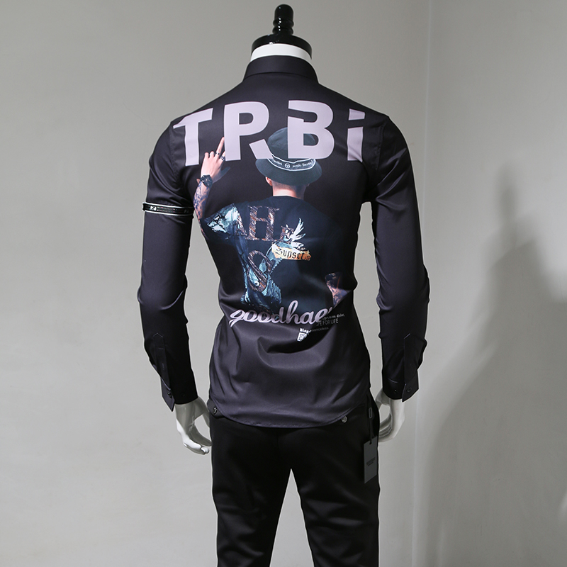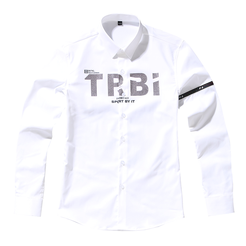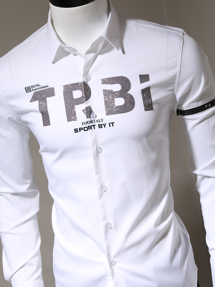2024春秋款青年潮流休闲衬衫男长袖修身人物图案免烫印花烫钻衬衣