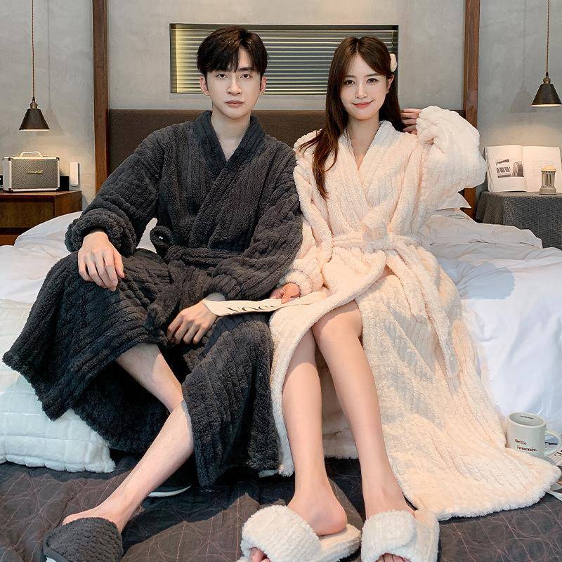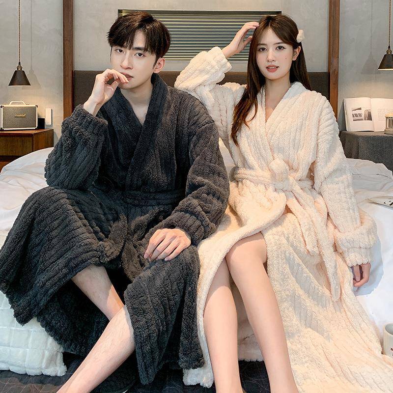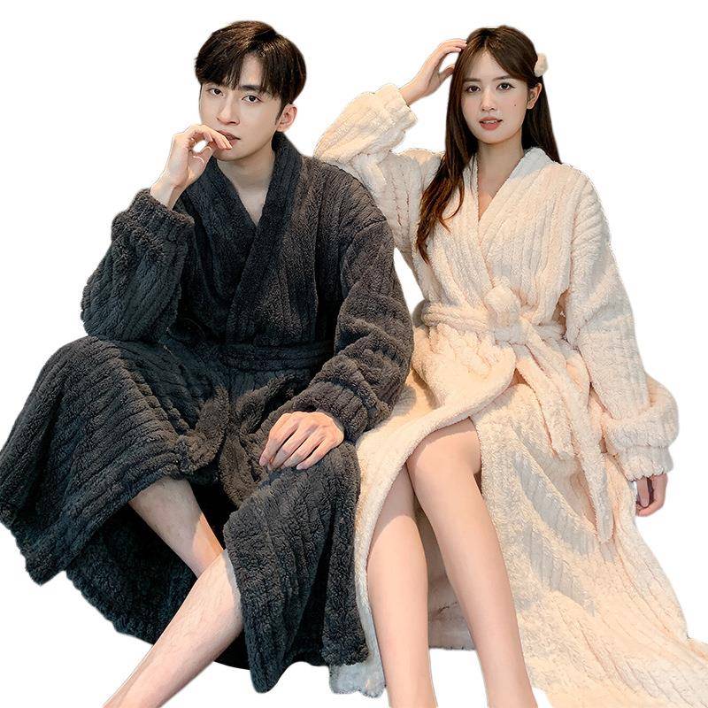 情侣睡衣女秋冬季珊瑚绒加厚保暖长款性感网红风毛绒男士睡袍浴袍