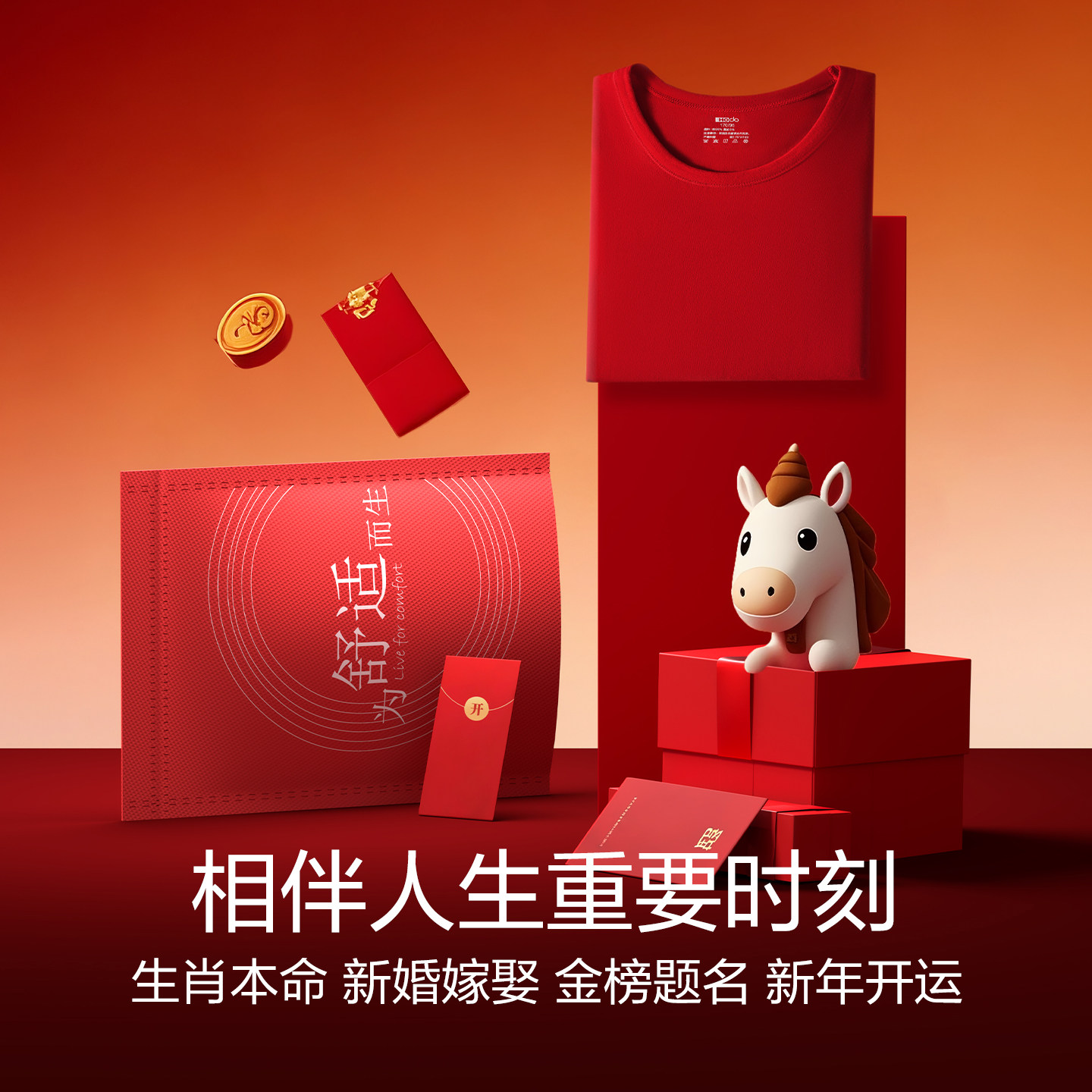 红豆情侣红色本命年秋衣秋裤磨毛A类男女士马年基础保暖内衣套装