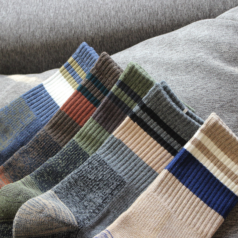 秋冬季长筒袜子纯棉长袜男潮冬款保暖加厚毛巾底中筒高帮男士袜子