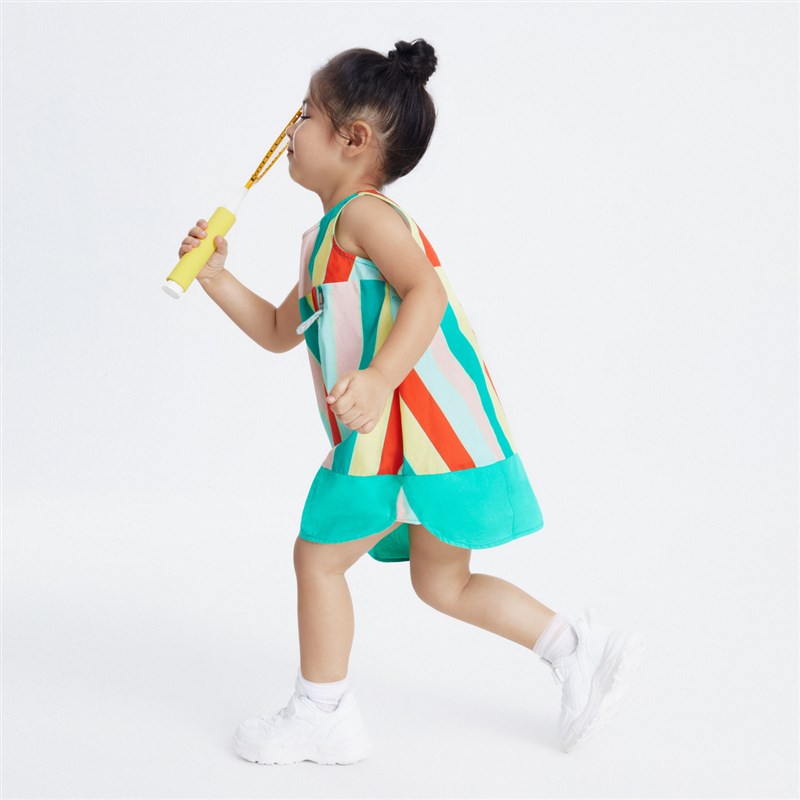 安奈儿女小童装无袖背心连衣裙夏季款纯棉宽松彩色条纹花苞裙