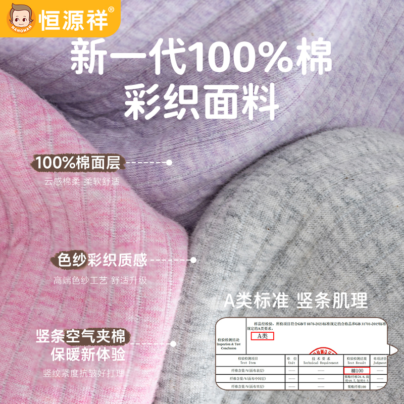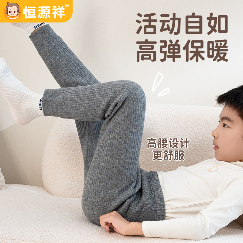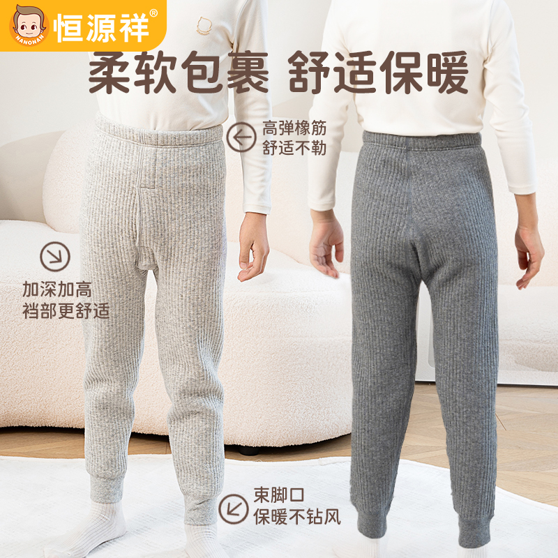 恒源祥儿童夹棉保暖裤三层加厚秋裤男童女童中大童纯棉加绒裤冬季