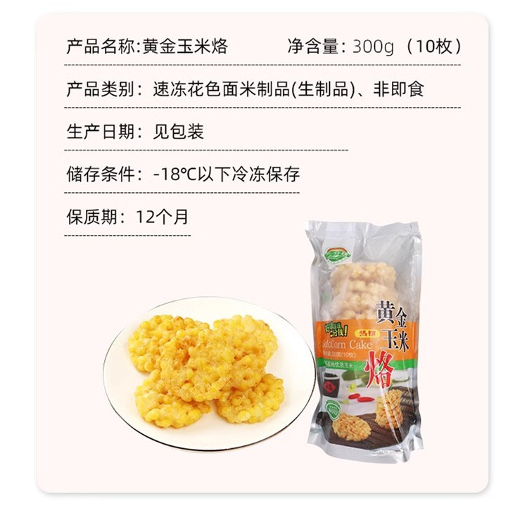 黄金玉米烙二分钱烙饼酒店半成品油炸小吃冷冻甜点心粗粮早餐300g