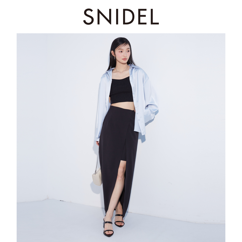 SNIDEL春夏款气质优雅高腰直筒开叉露腿半身裙SWFS241212
