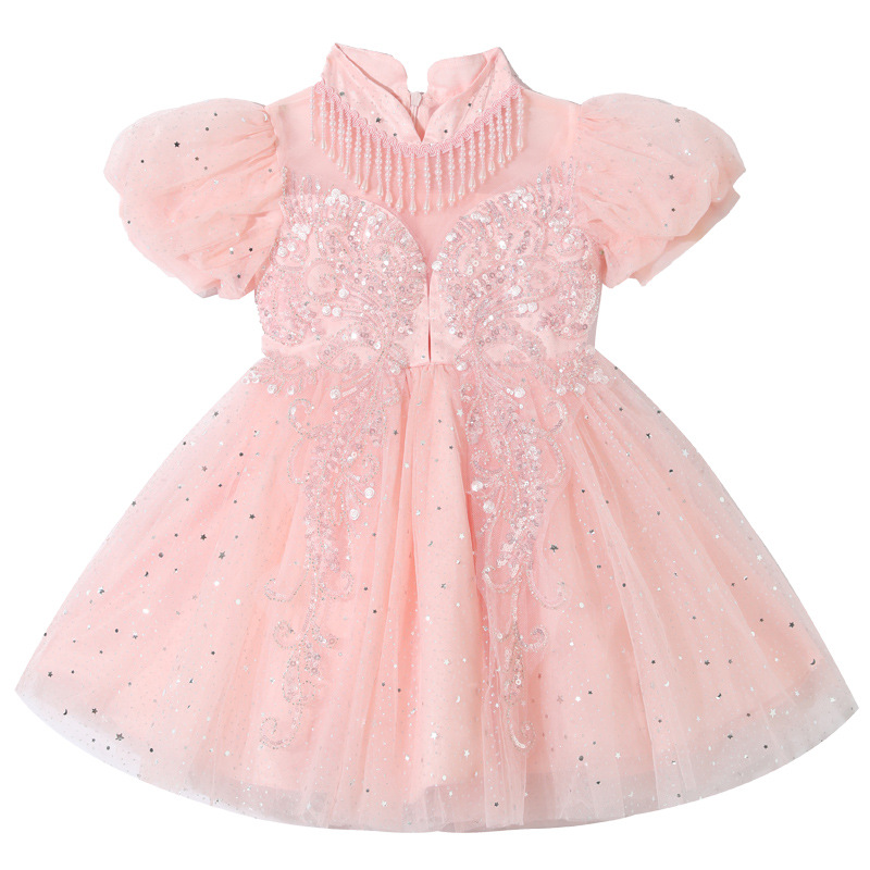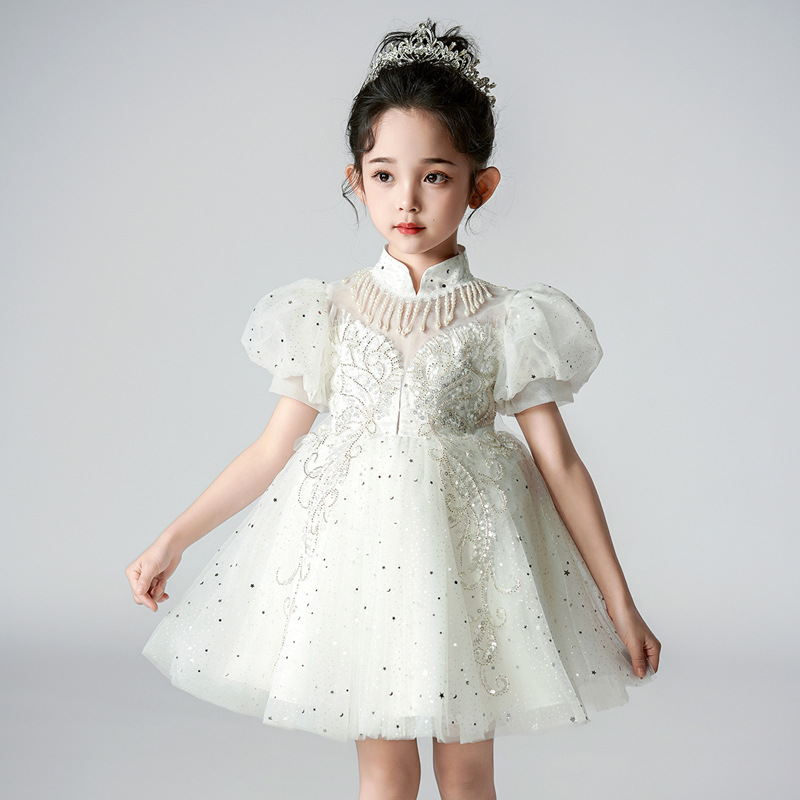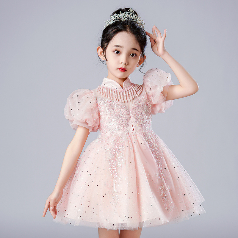 女童网纱公主裙2024夏款短袖礼服连衣裙女孩子中大童六一表演服装