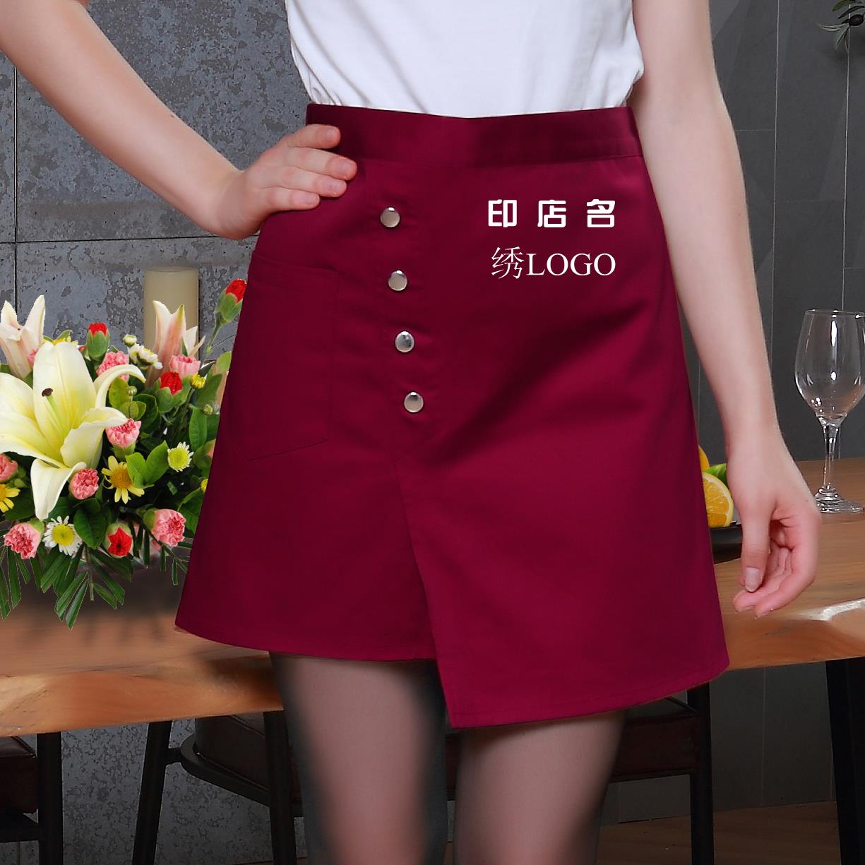 2213#半身开叉短围裙半截围腰 酒店餐厅饭店服务员工作定制包邮