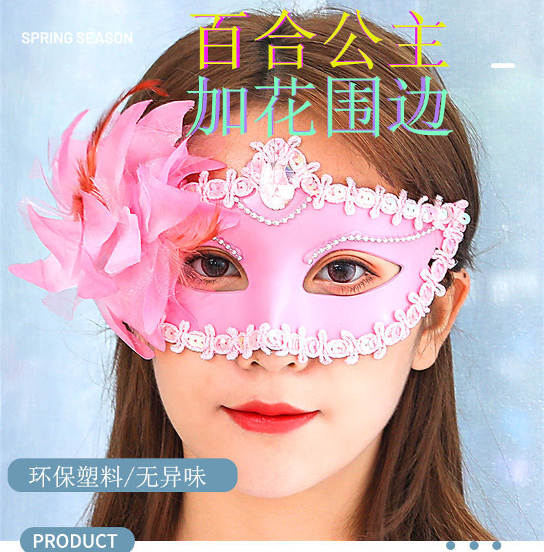 百合羽毛面具成人女款半脸公主化装舞会COS表演酒吧KTV万圣节道具