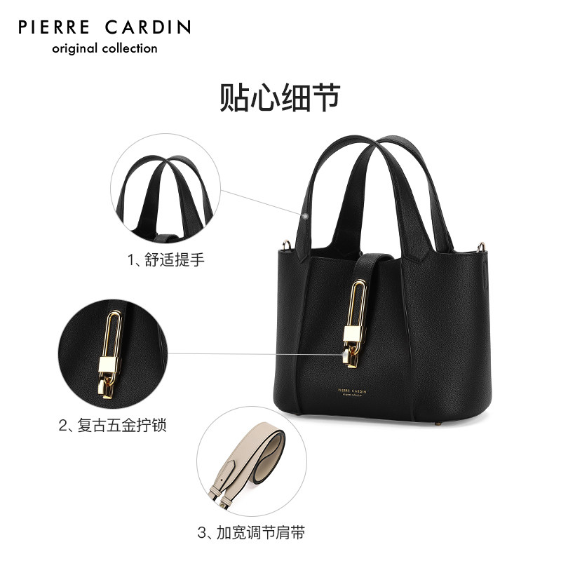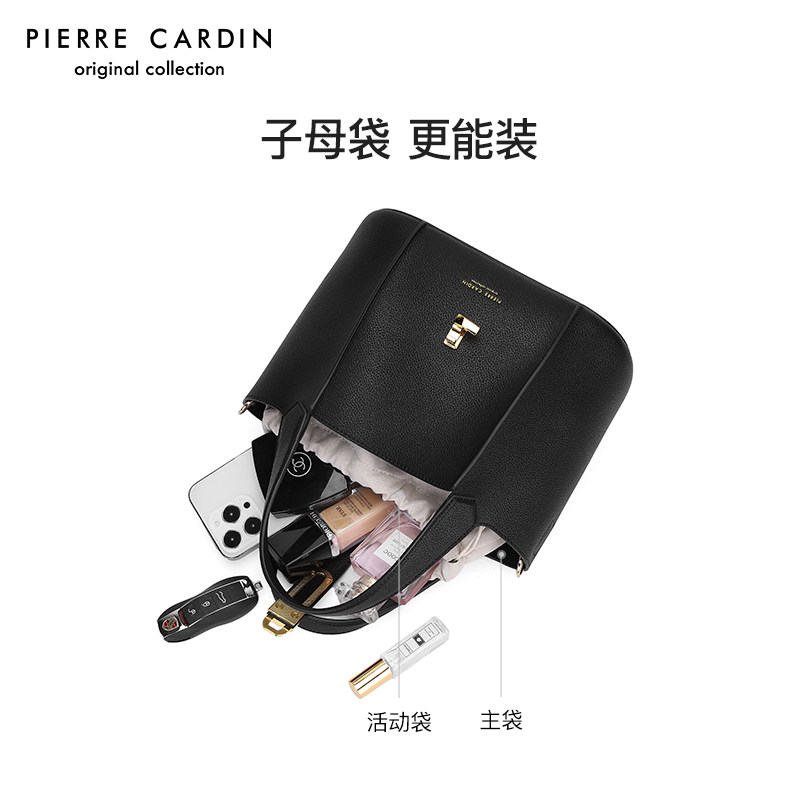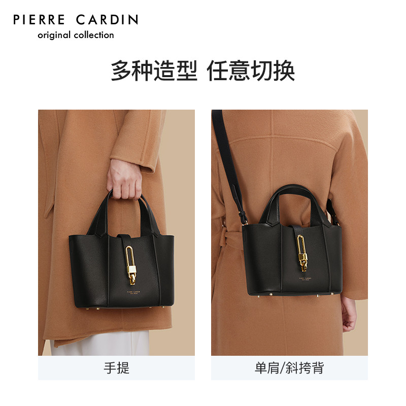 皮尔卡丹新款女包时尚手拎水桶包大容量头层牛皮手提女包生日礼物