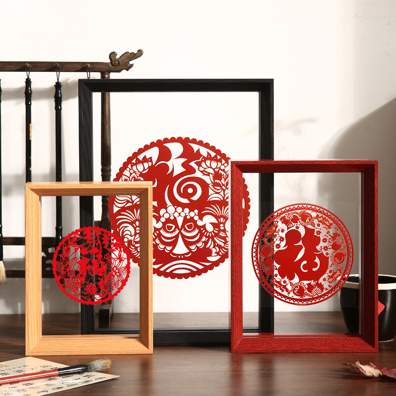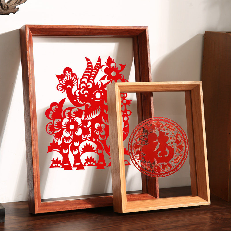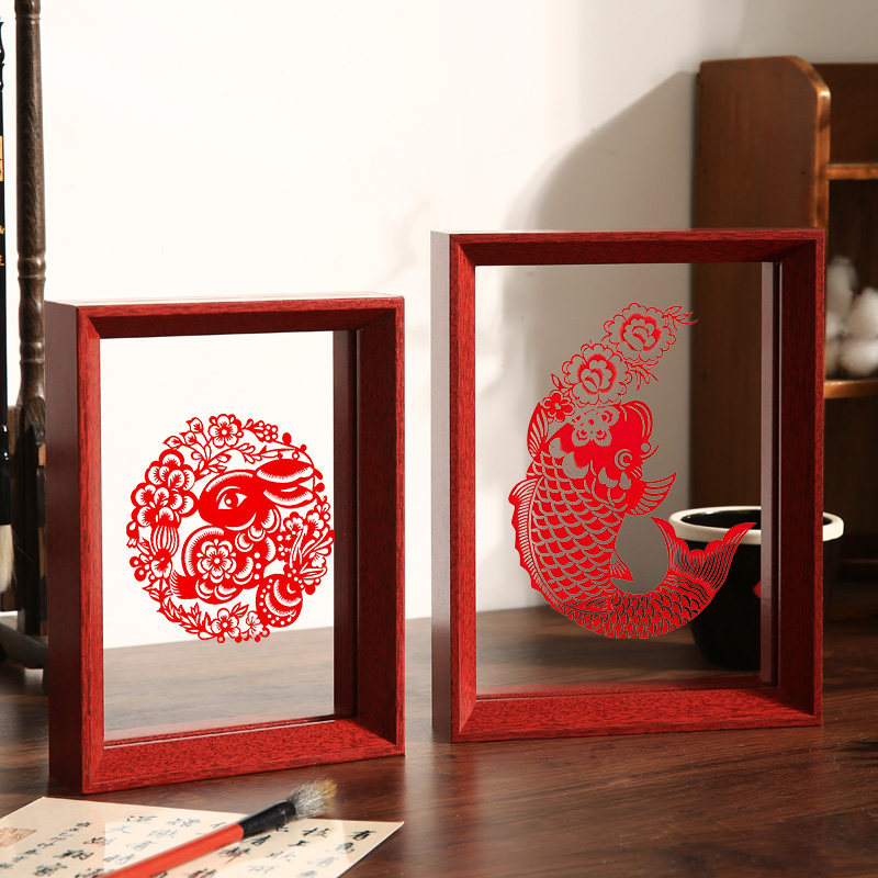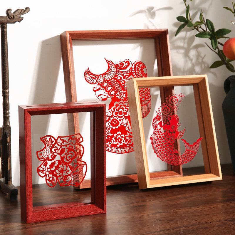 中式双面透明相框摆台新年剪纸福字书法裱框摆件标本展示架A4画框