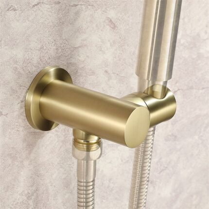 拉丝金手持花洒支架带进水口圆形底座可旋转角度家装主材卫浴配件