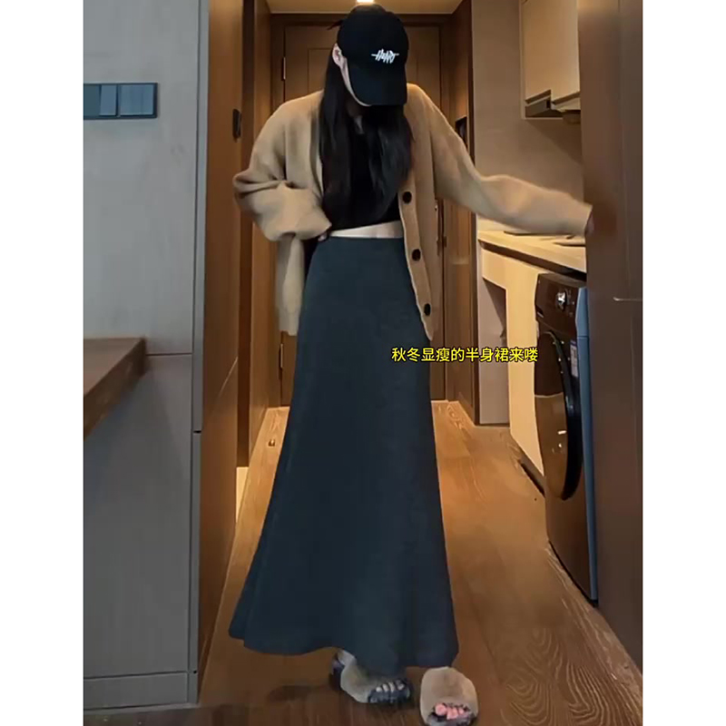 高腰a字鱼尾裙遮腿粗显瘦长裙子