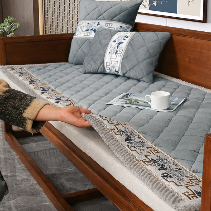 中式实木红木沙发坐垫冬季加厚毛绒防滑老式沙发垫套罩灰2023新款