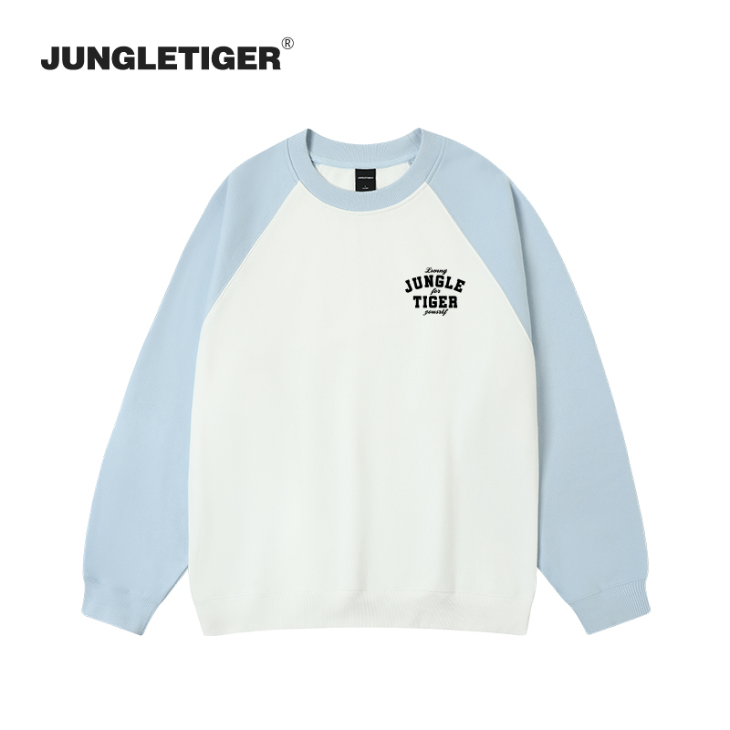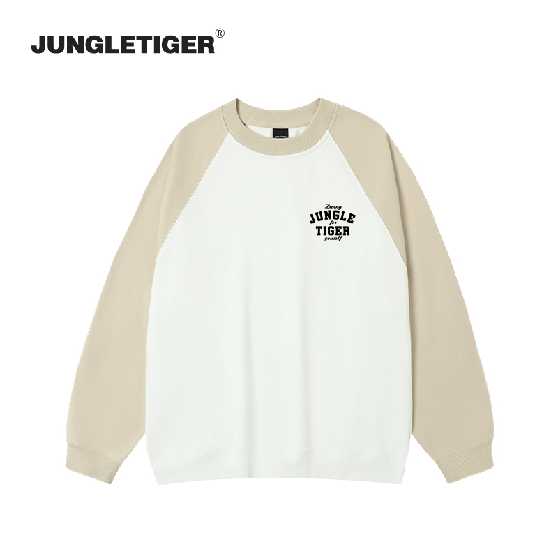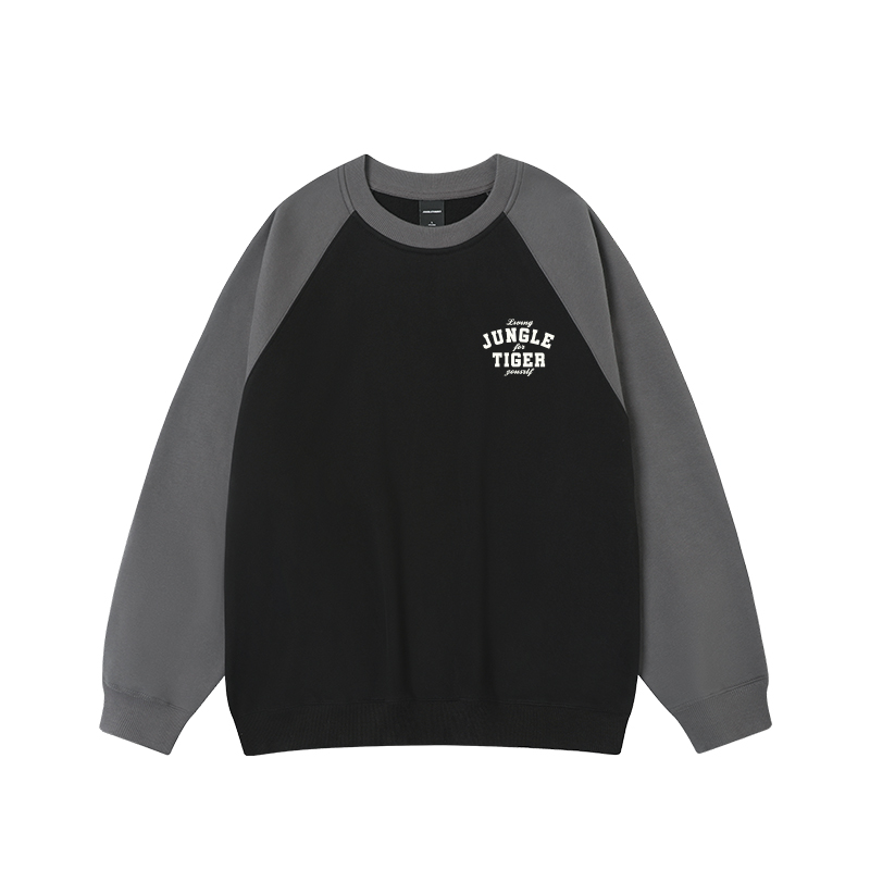丛林老虎潮牌LOGO插肩卫衣春秋新款厚板胶印圆领重磅运动上衣男女