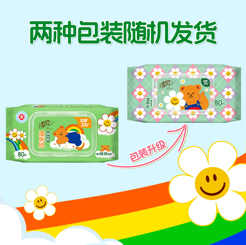 【李昀锐同款】清风湿厕纸家庭装80片5包家用卫生湿巾湿纸巾ms