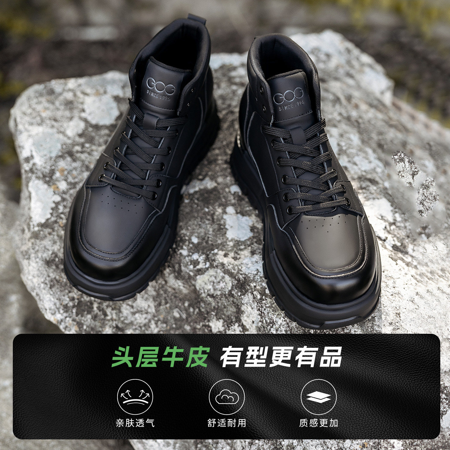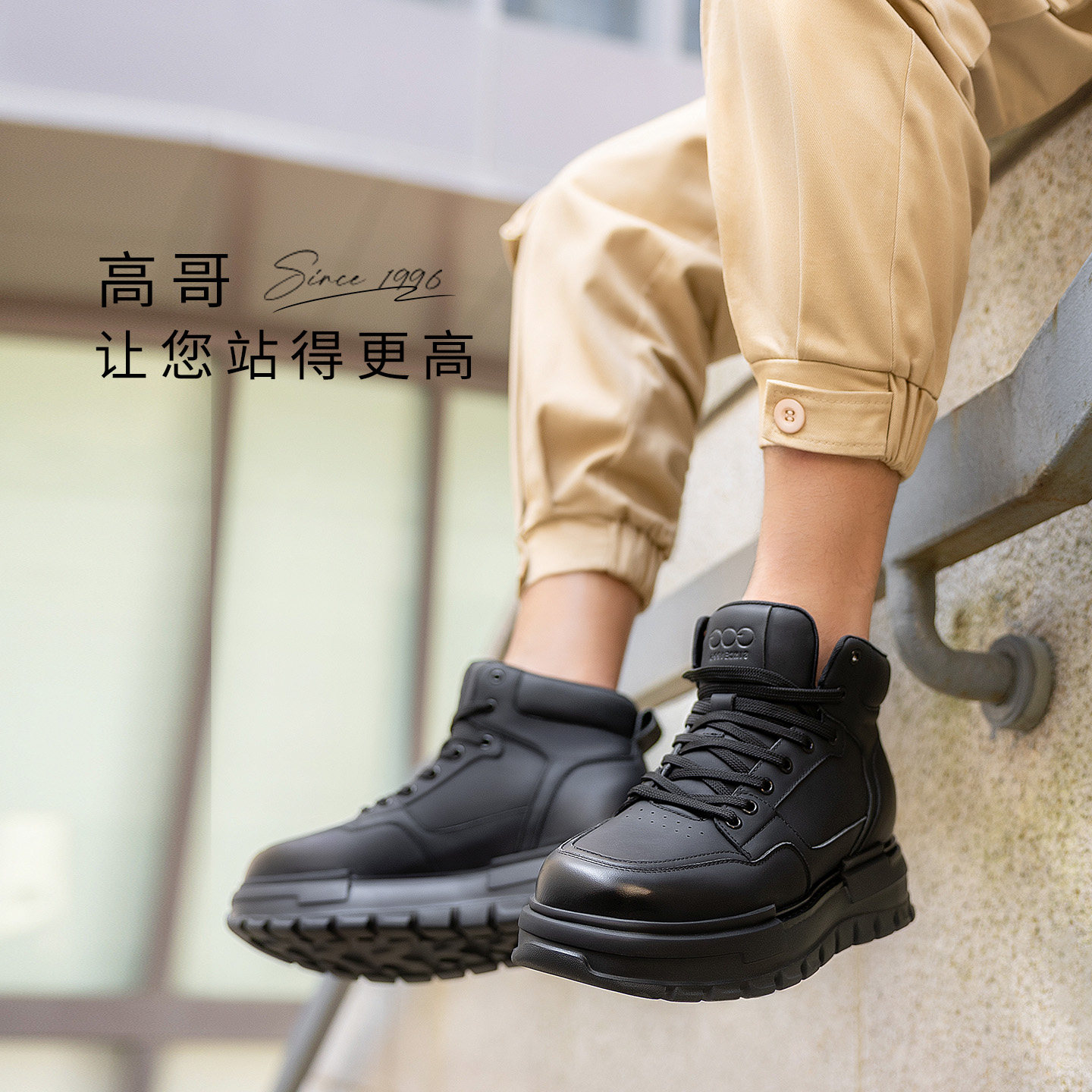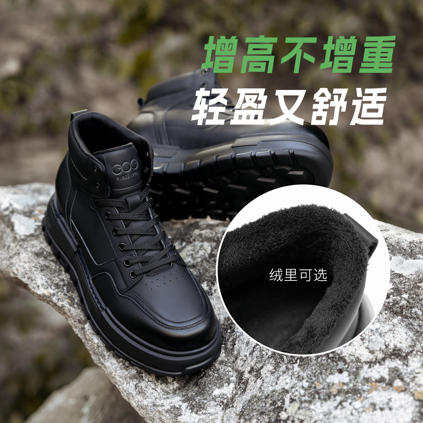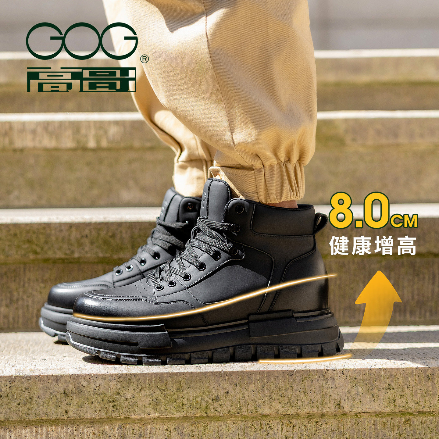 高哥增高板鞋厚底加绒棉鞋高帮头层牛皮男鞋轻便内增高鞋8CM