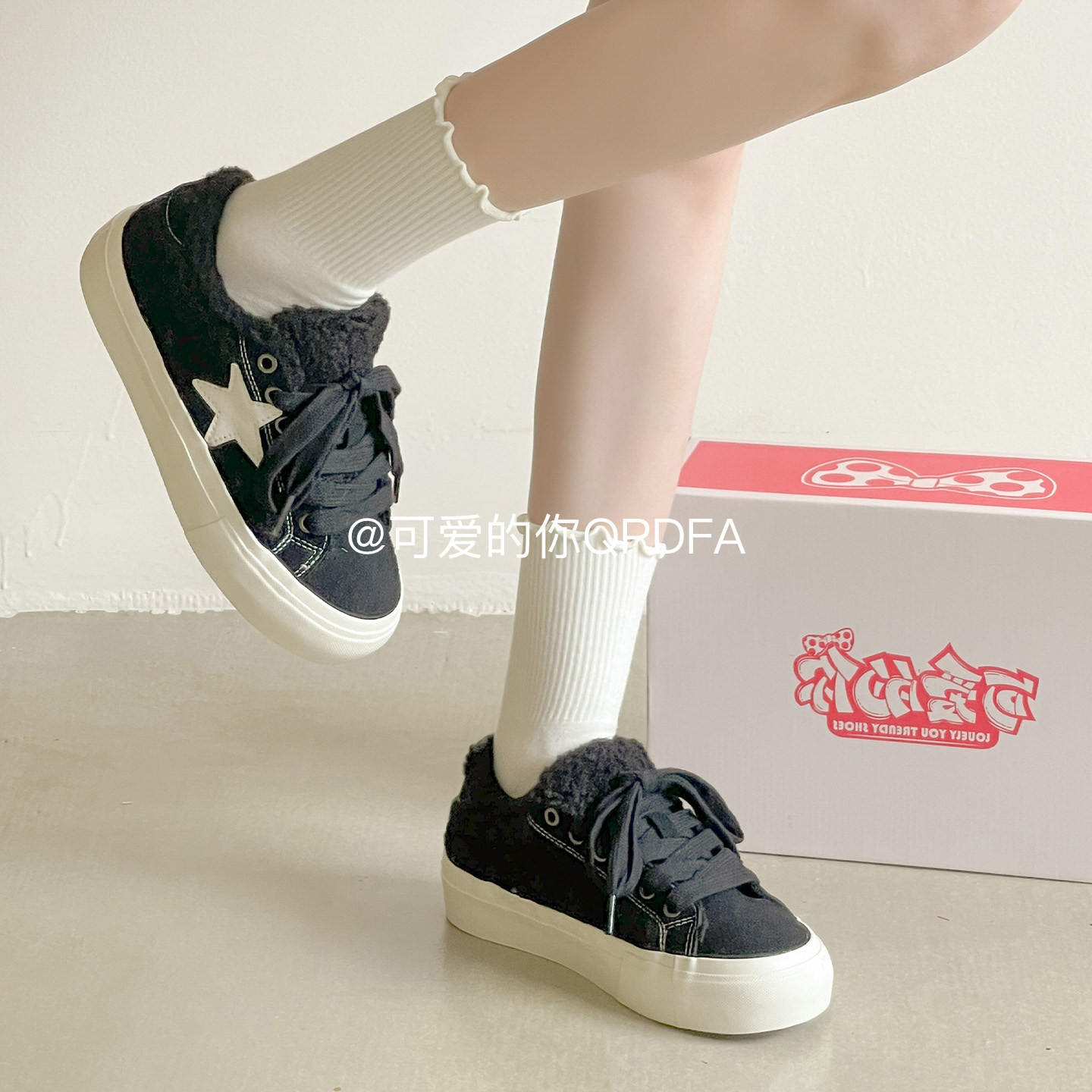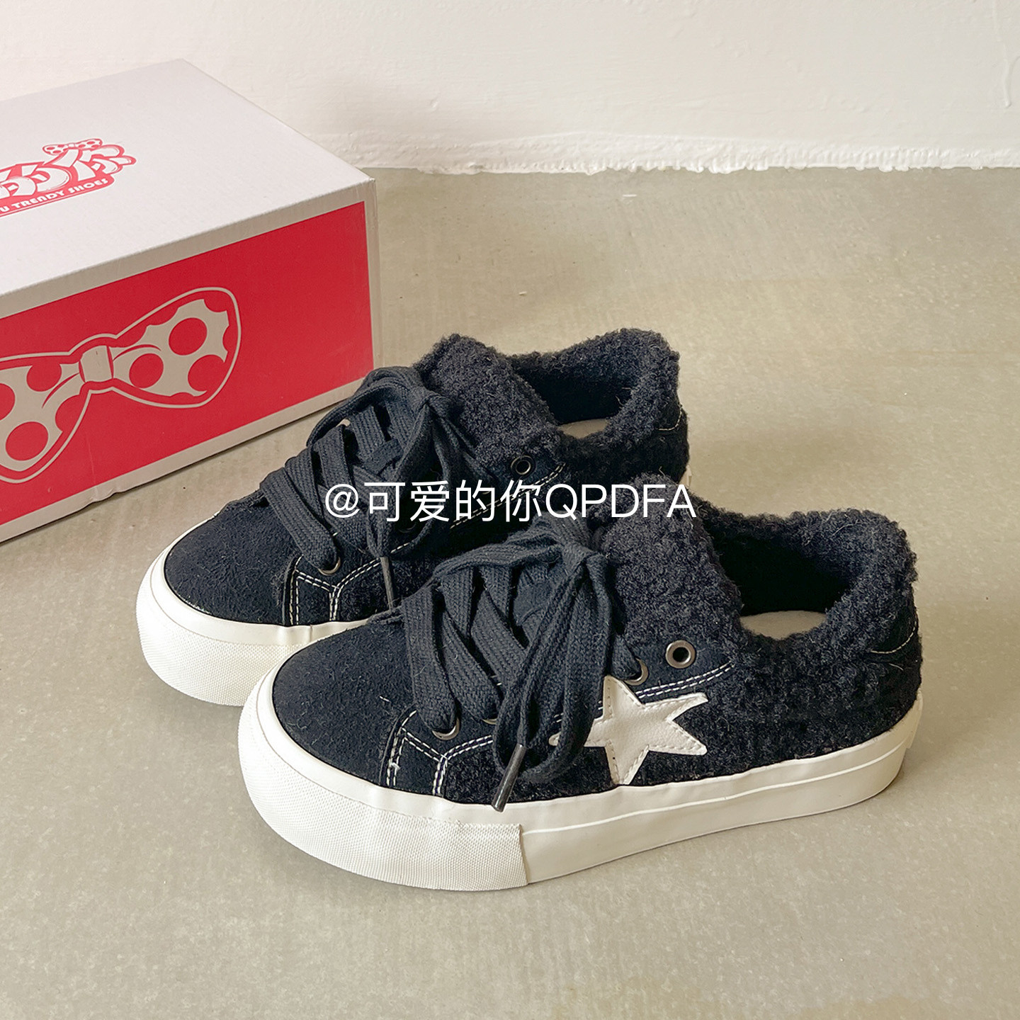 可爱的你冬季加绒厚底小白鞋女款2025新款爆款板鞋二棉女鞋面包鞋