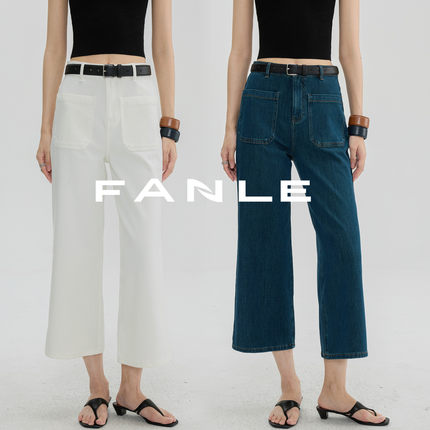 FANLE STUDIOS夏季高品质水洗轻薄棉直筒显瘦9分复古竖口袋牛仔裤