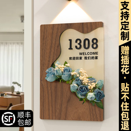 门牌号码牌家用定制民宿包厢包间中古风高级感装饰房间号小区住宅公寓入户门发光仪式感奶油风挂牌门挂标识贴