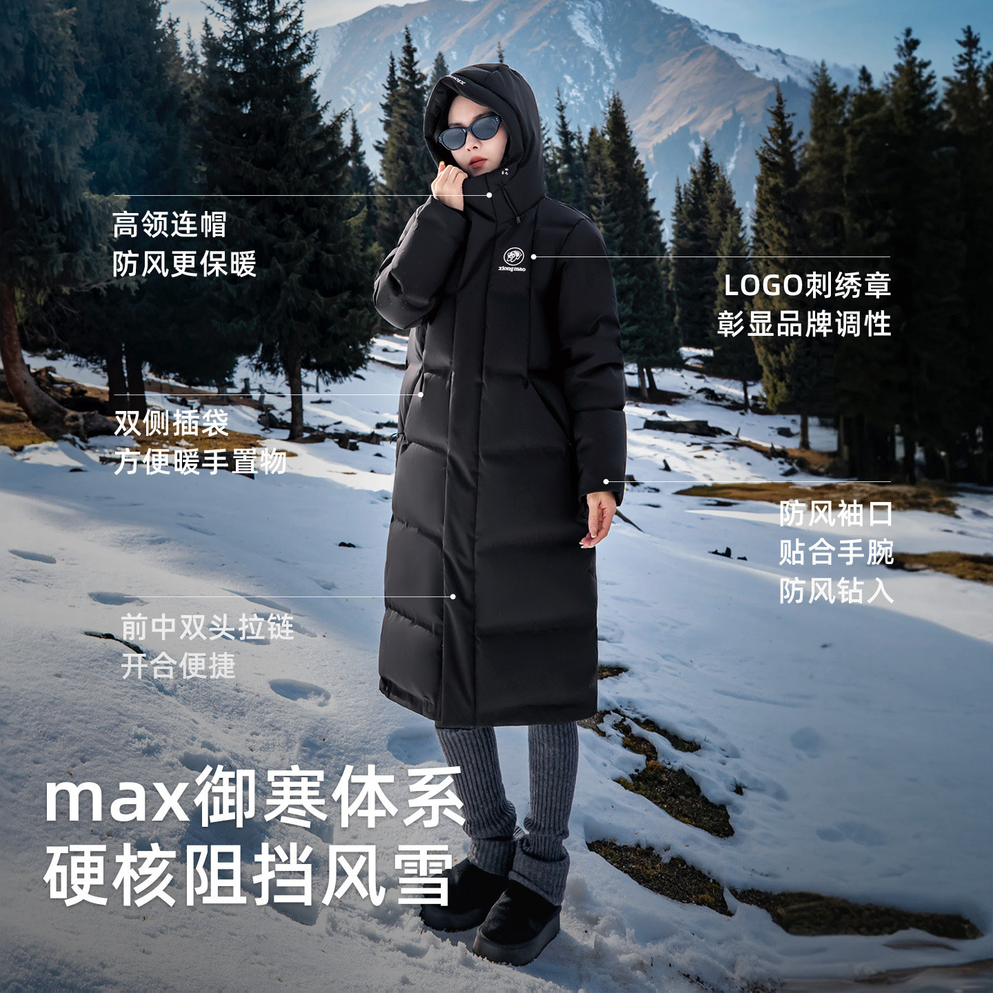 熊猫户外长款羽绒服女2026新款男女同款秋冬保暖舒适鸭绒外套