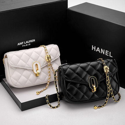 真皮迷你小众个性包包新款简约百搭菱格链条女包单肩斜挎小方包