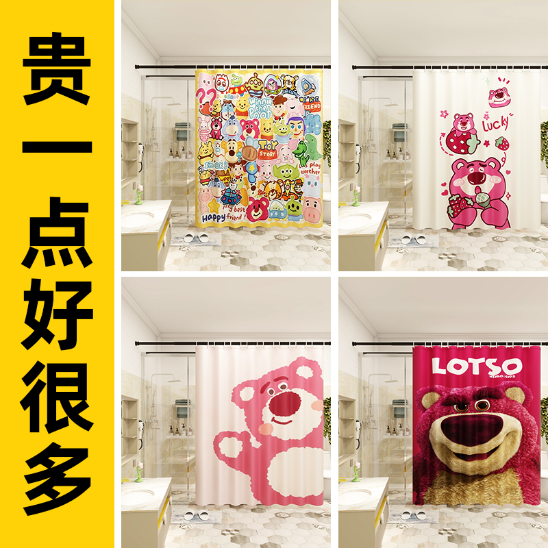 浴帘防水防霉浴室拉帘套装免打孔隔水帘加厚隔断窗卡通日式草莓熊