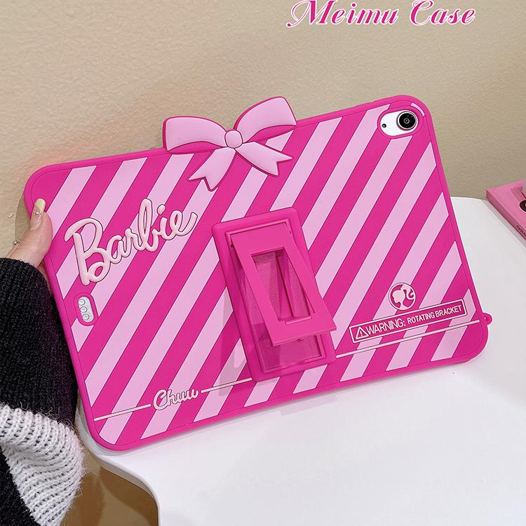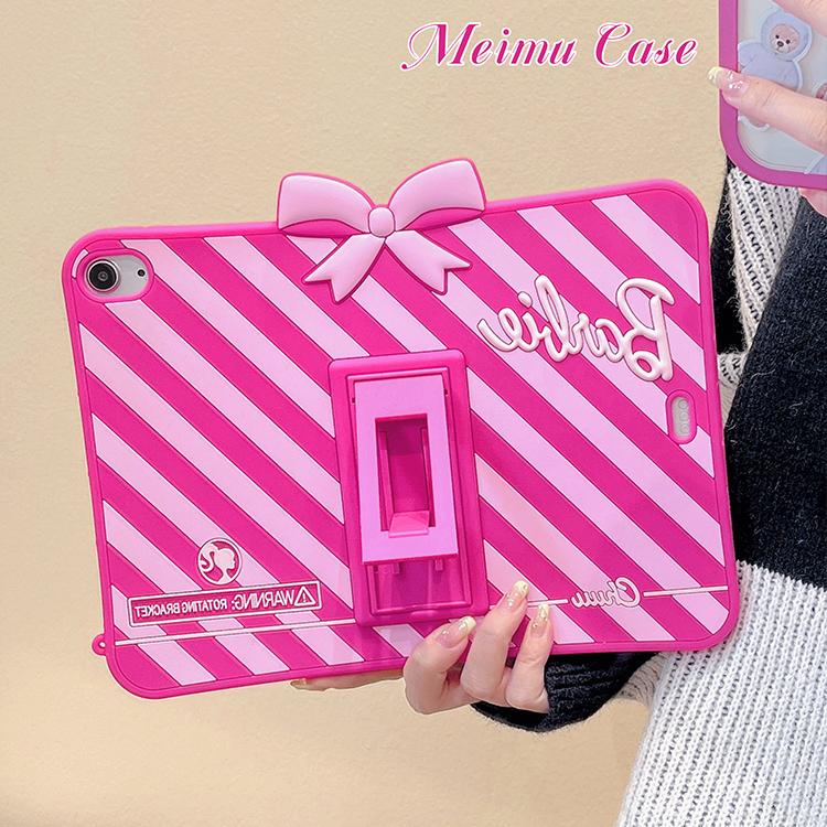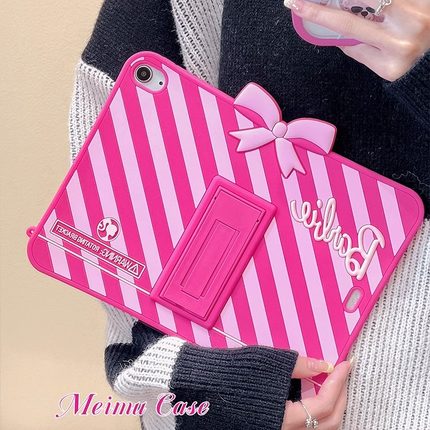 美牧 芭比粉蝴蝶结适用2022新款iPad9/8保护壳苹果air5/4全包边mini6防摔电脑Pro11/10.2带支架软硅胶平板套