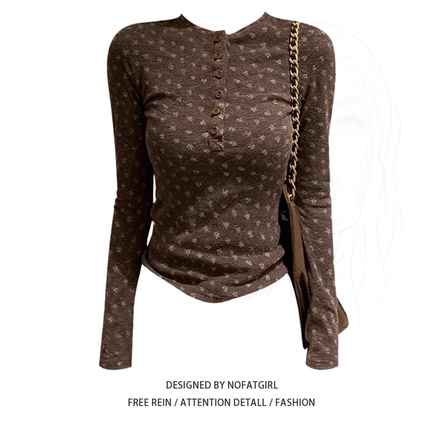 大码胖mm韩系休闲风圆领棕色长袖打底衫秋冬新款修身显瘦T恤上衣