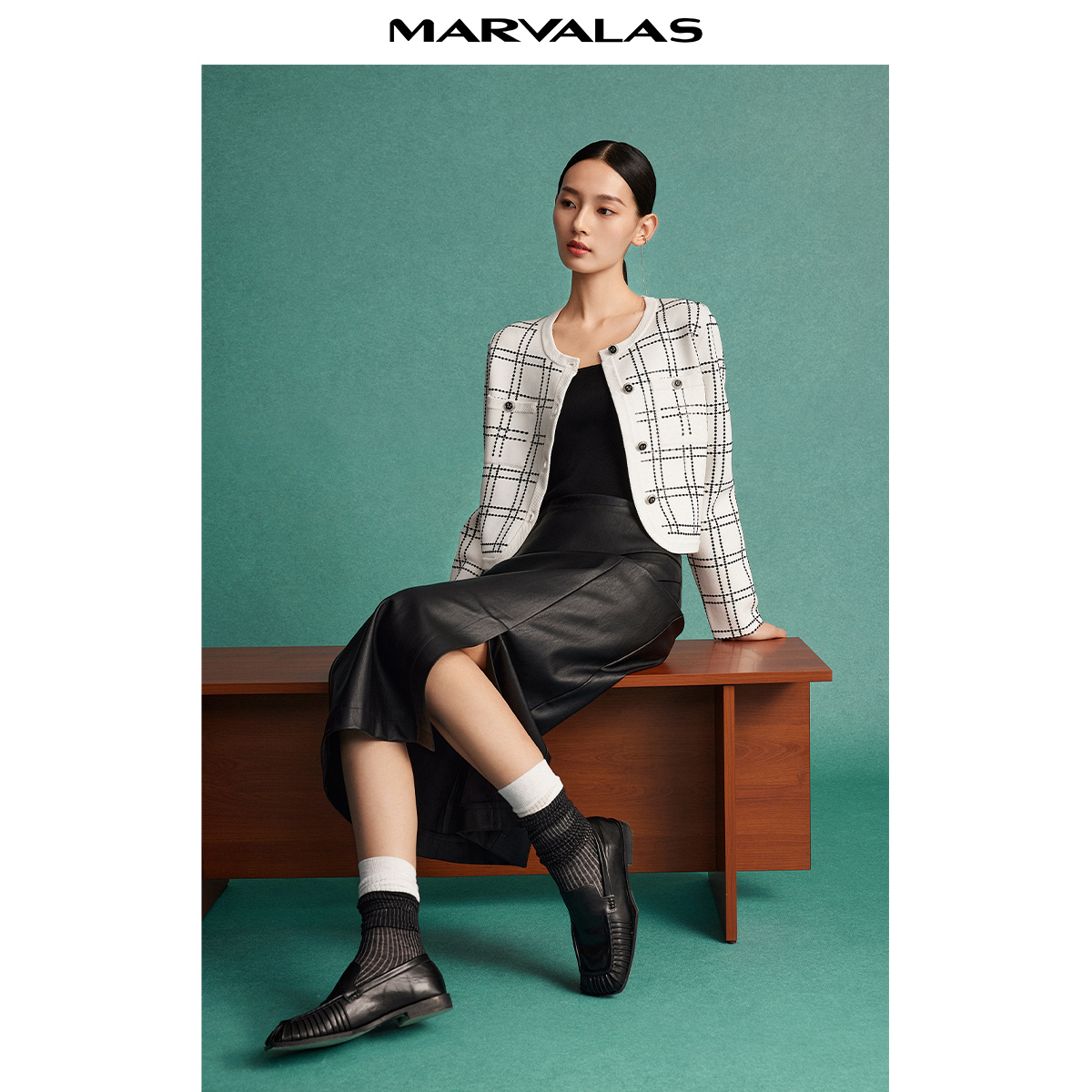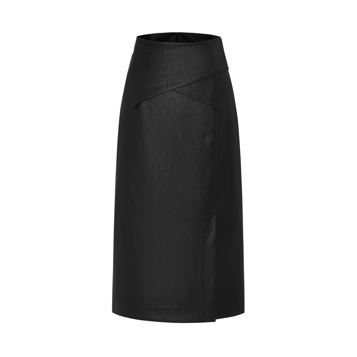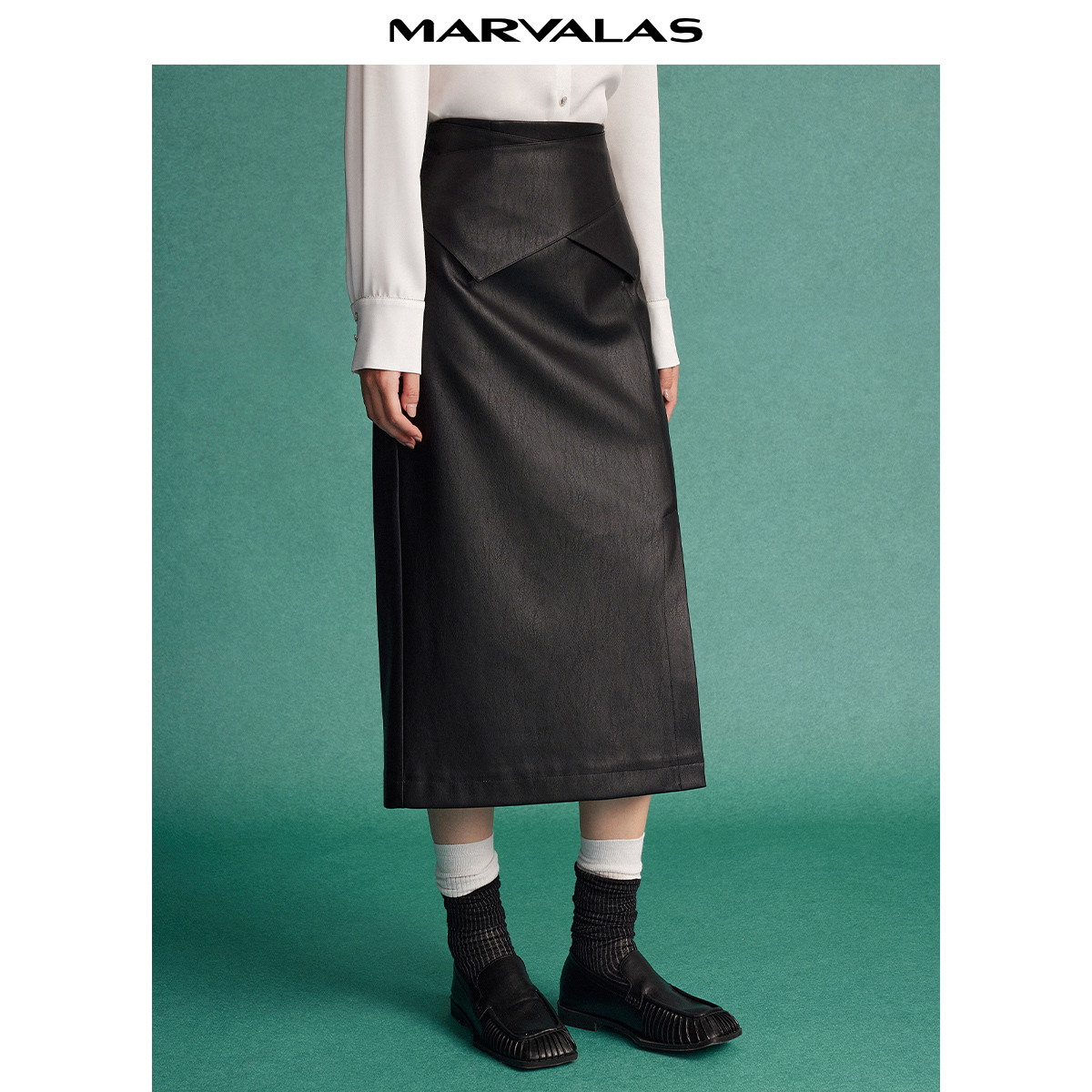 曼德诗设计感皮裙半身裙2025秋季新款高腰纯色开叉一步裙包臀长裙