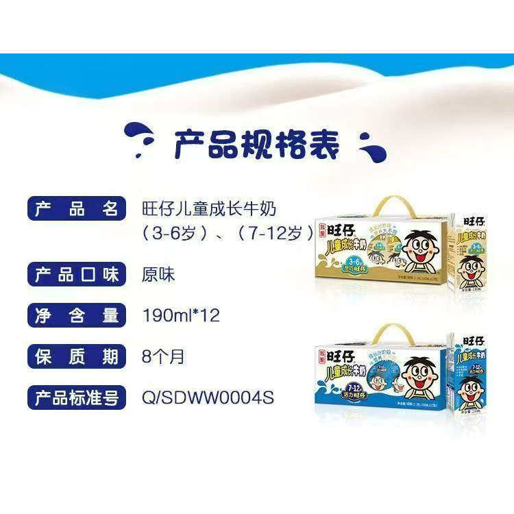 3月到期旺仔儿童成长牛奶190ml*12瓶旺仔牛奶