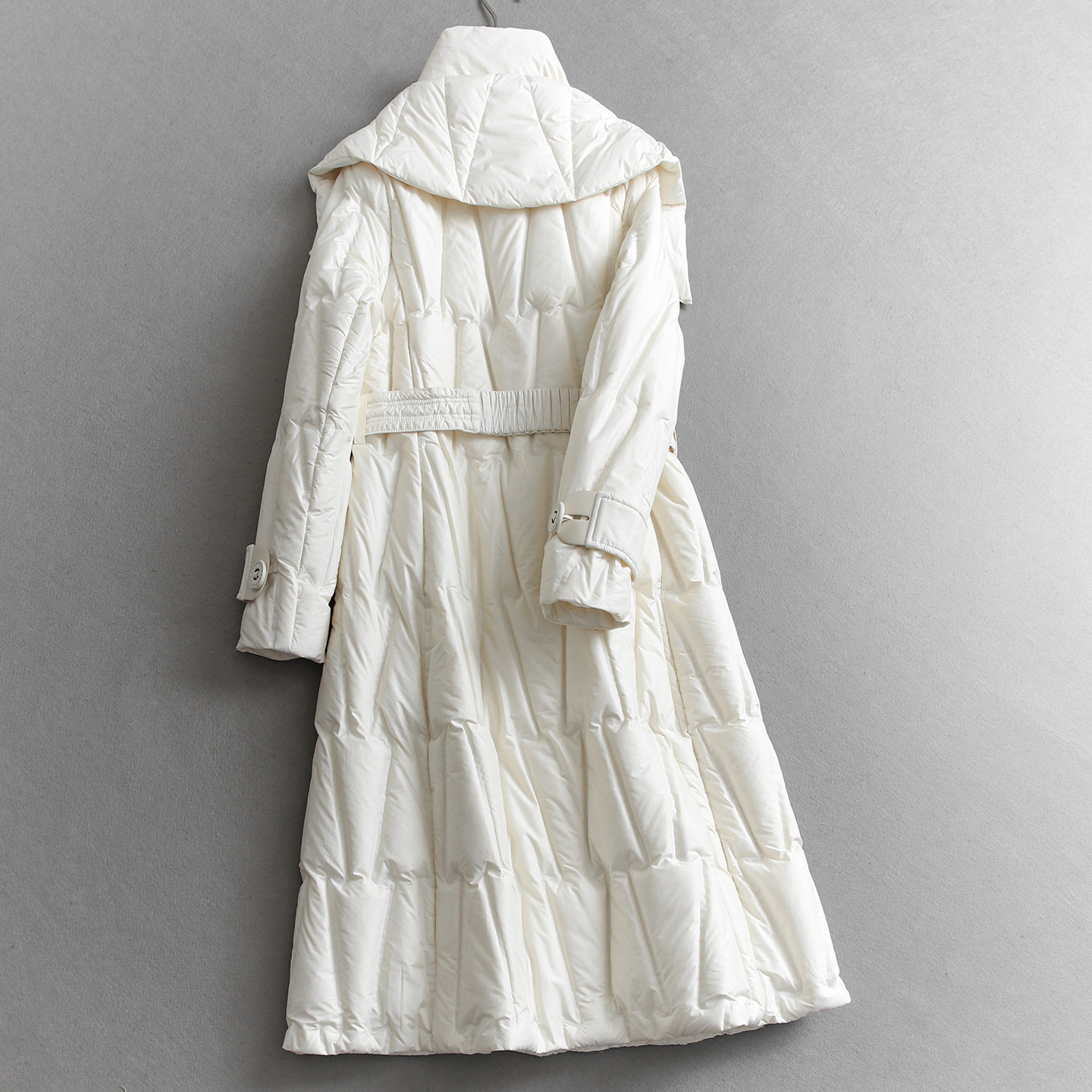 纯色双层高领压胶系腰带显瘦过膝长款保暖外套长袖女装羽绒服Q998