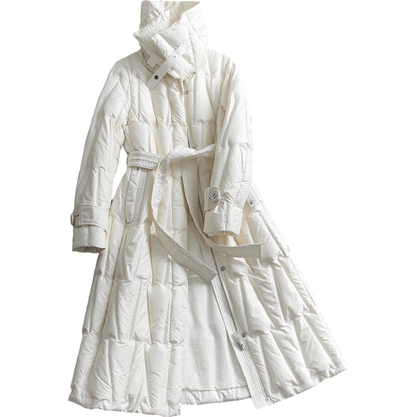 双层高领压胶腰带长款女羽绒服