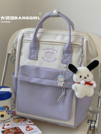 大橘猫书包女小众校园简约少女初中大学生帆布大容量电脑双肩背包