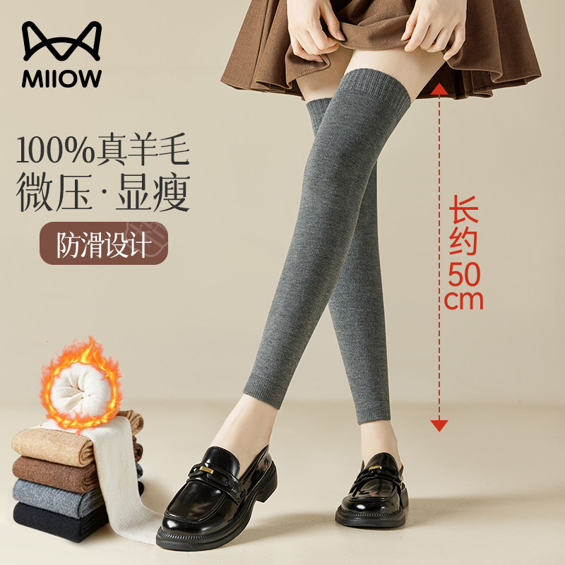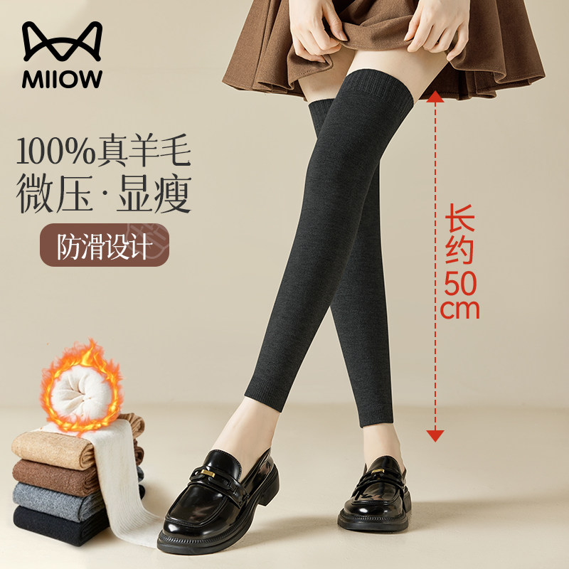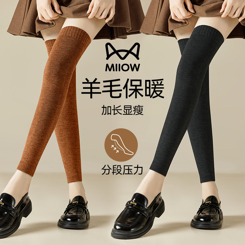猫人过膝袜套长筒袜子女秋冬季加厚护膝羊绒保暖羊毛袜女款护腿套