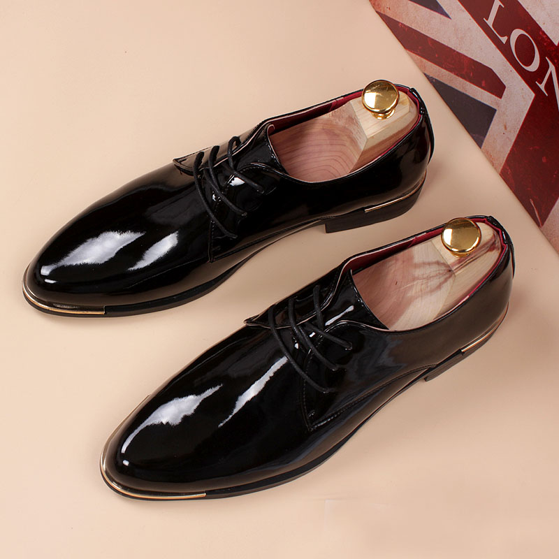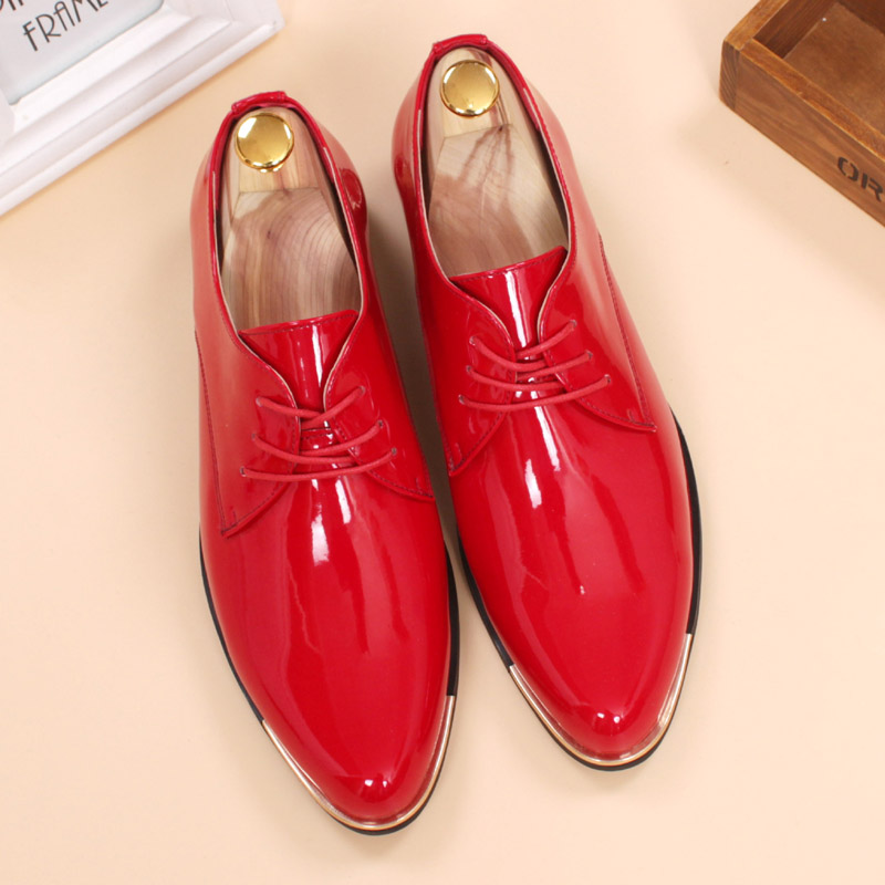青年男生尖头皮鞋春秋漆皮大红色男鞋发型师韩版个性休闲鞋子