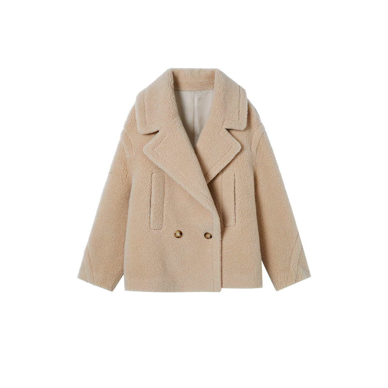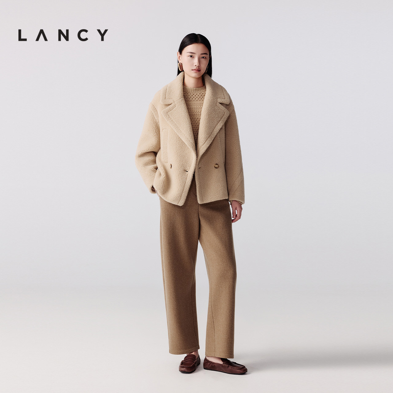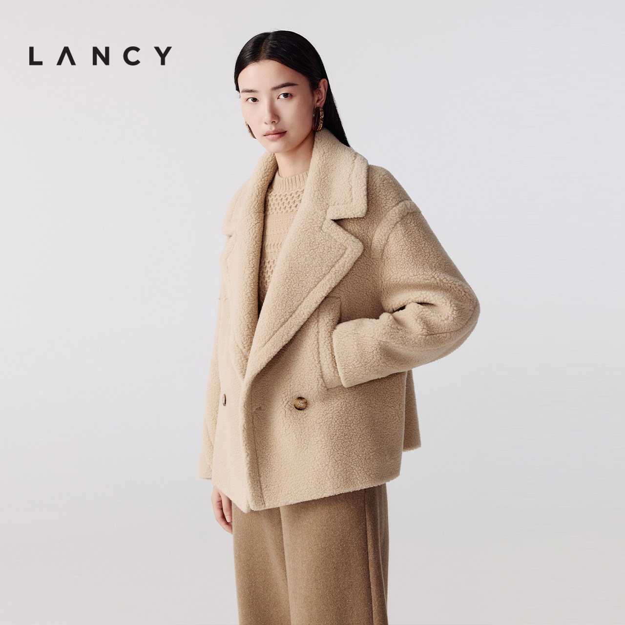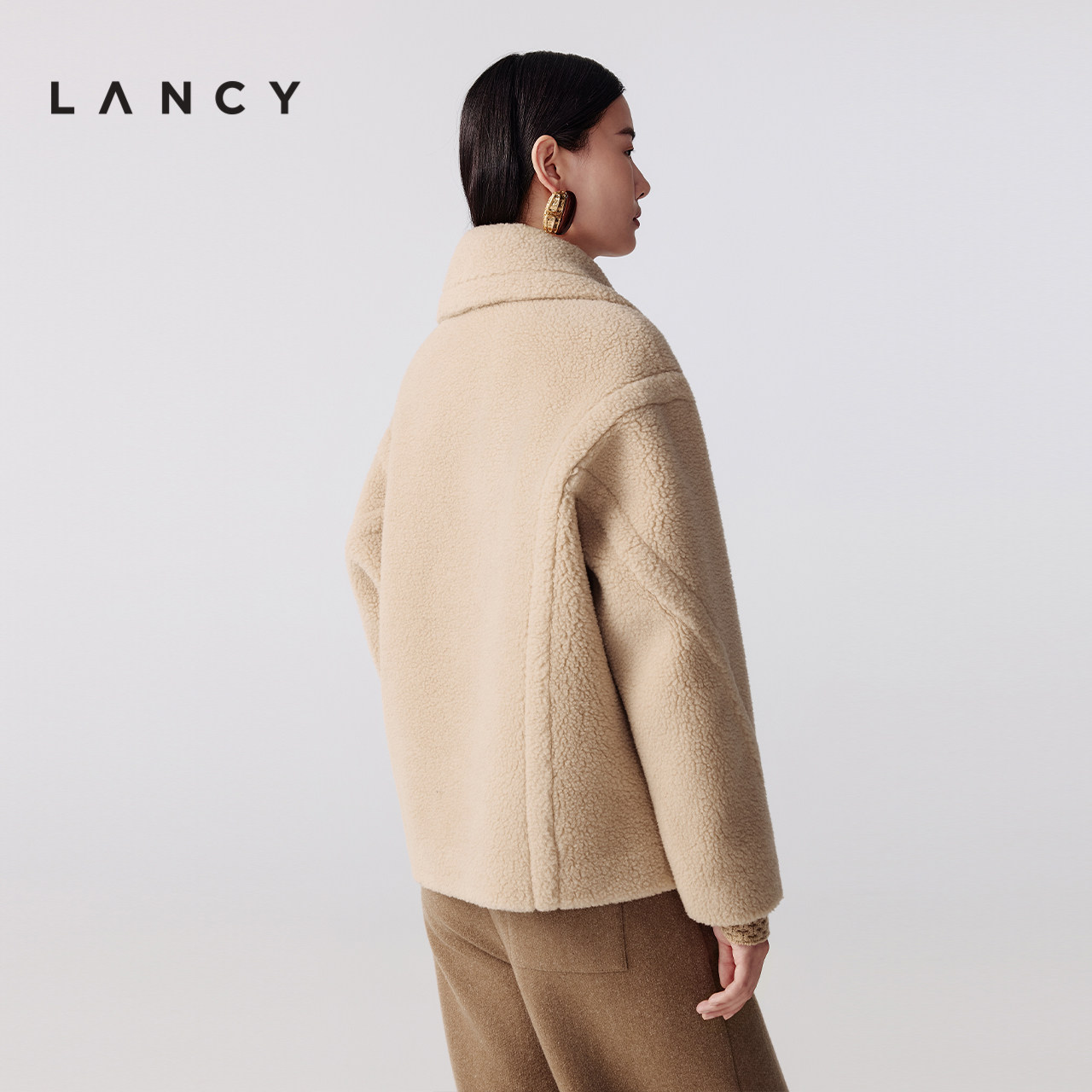【纯羊毛】LANCY/朗姿2025冬新款高端时尚羊剪绒翻领短大衣外套女
