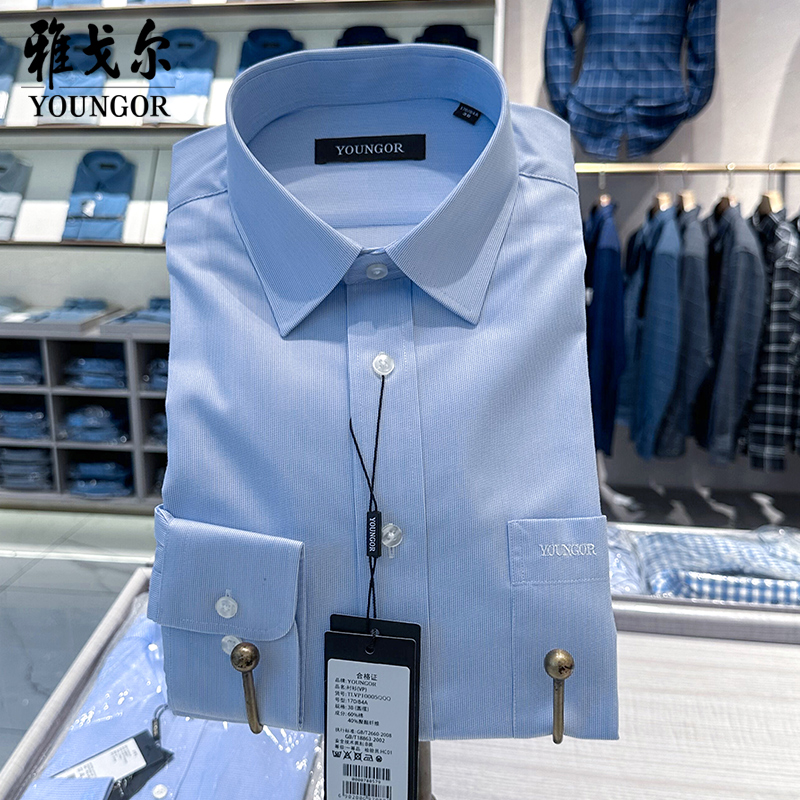 雅戈尔长袖衬衫男免烫商务正装蓝色细条纹职业工装男士衬衣春秋款