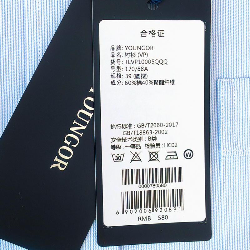 雅戈尔方领长袖商务休闲免烫衬衫