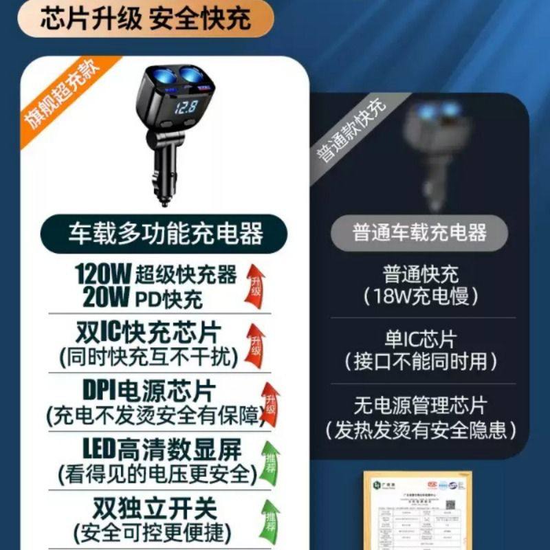 车载充电器汽车充智能超级快充头货车点烟器一拖二三usb转换插头