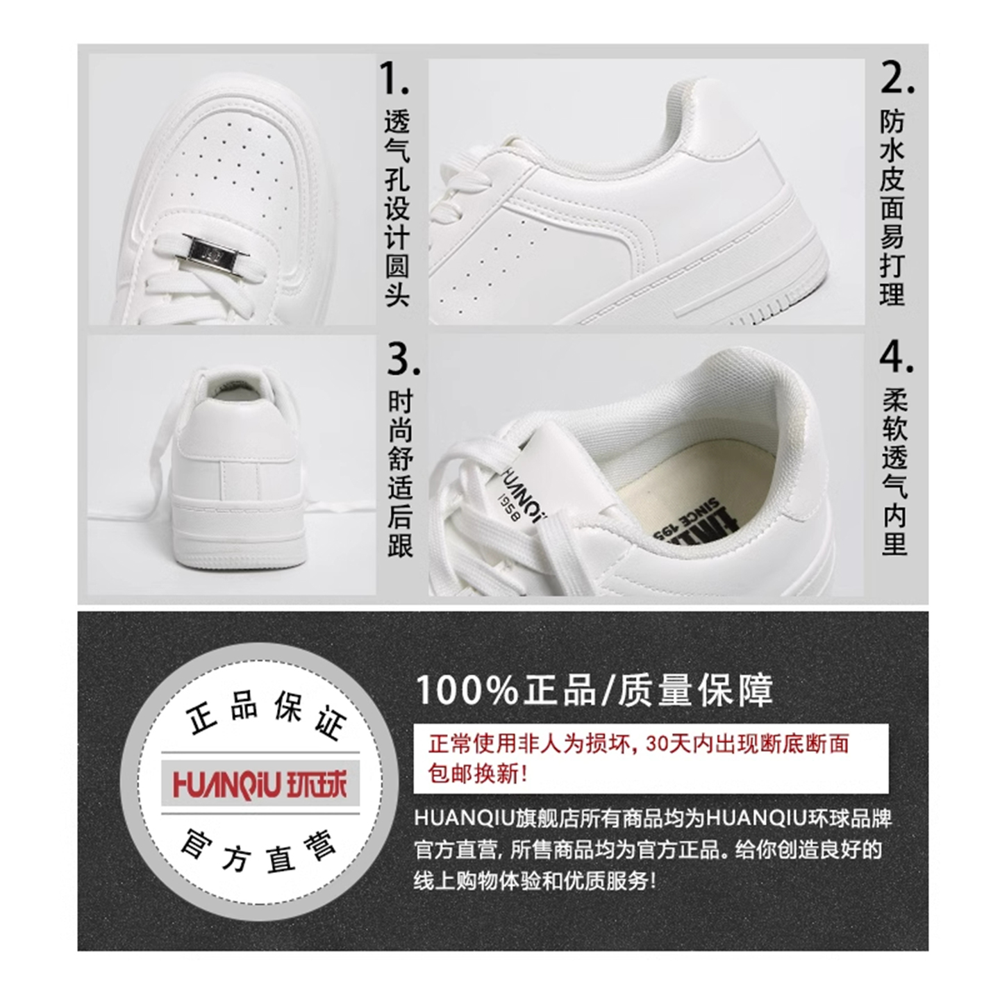 环球厚底小白鞋女鞋轻便防滑平底系带女款时尚学生运动休闲板鞋子