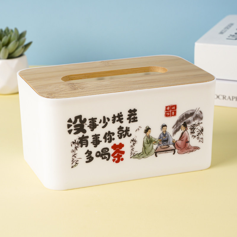 国风创意竹楠盖纸巾盒家用客厅茶几桌面加厚纸巾收纳盒酒店抽纸盒