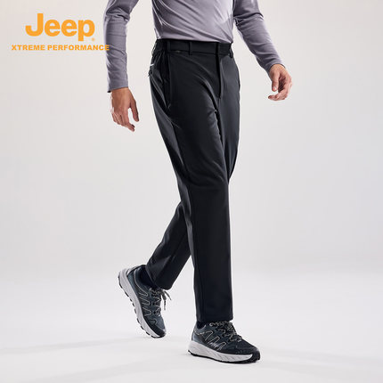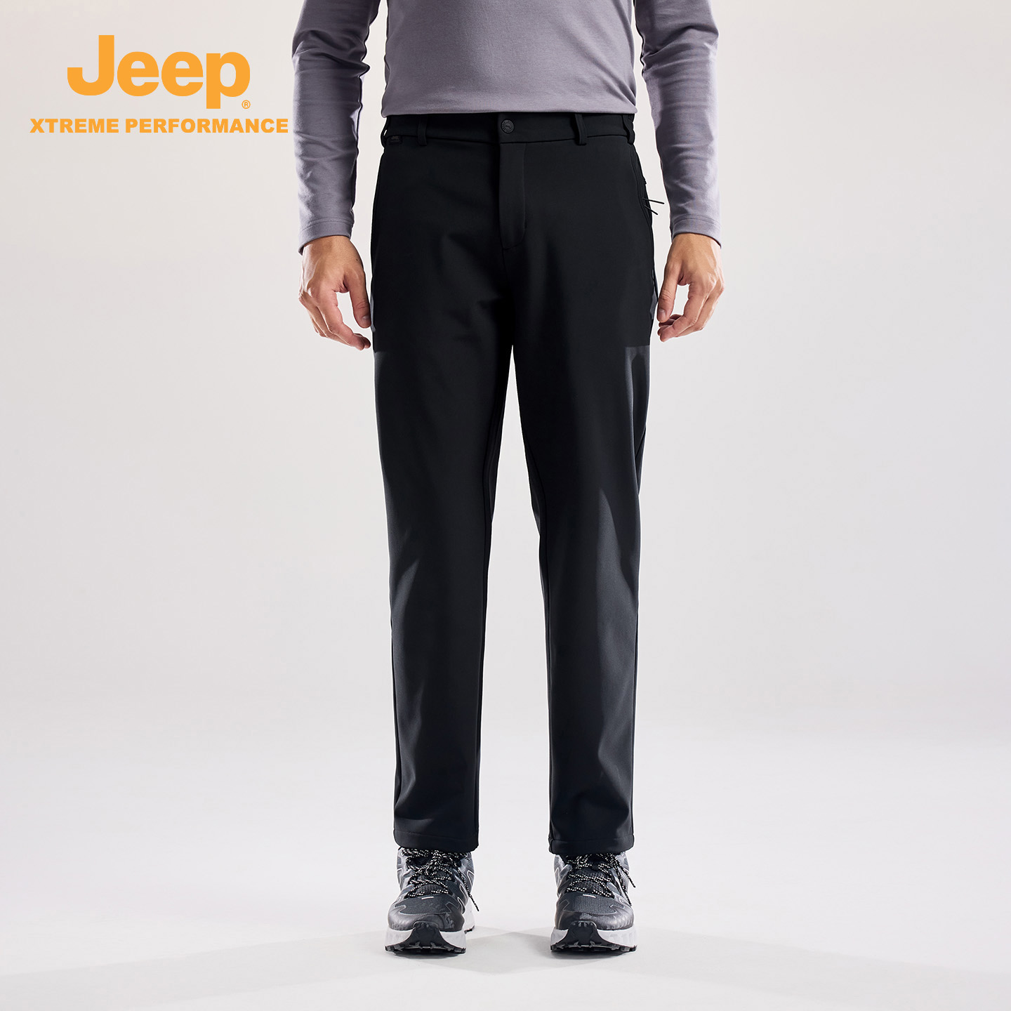 Jeep户外防风防泼水软壳裤男款透气加绒徒步冲锋裤登山保暖长裤秋