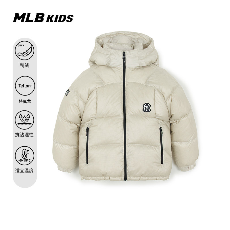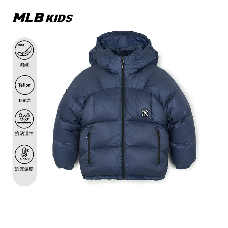 MLB儿童官方男女童三防面料户外短款连帽鸭绒羽绒服25秋冬新款