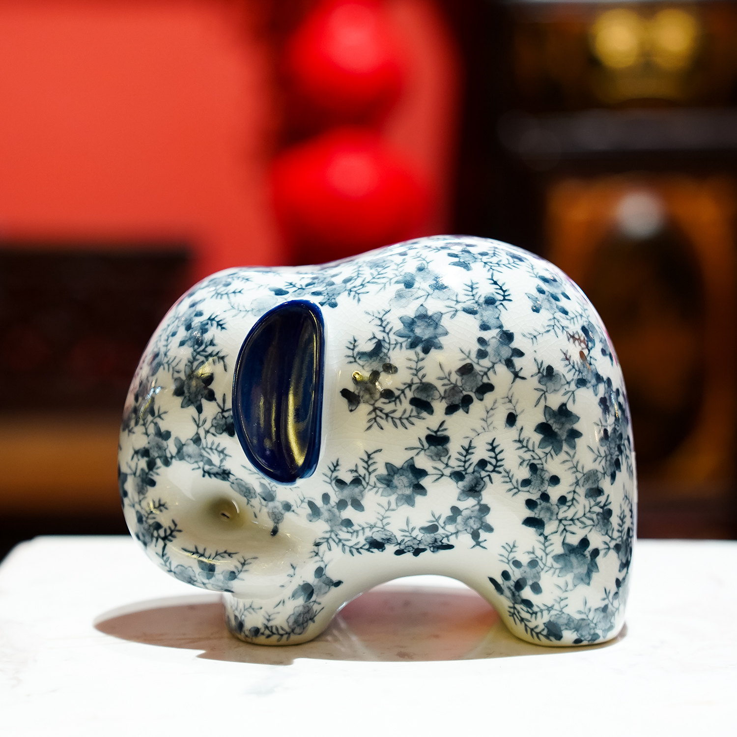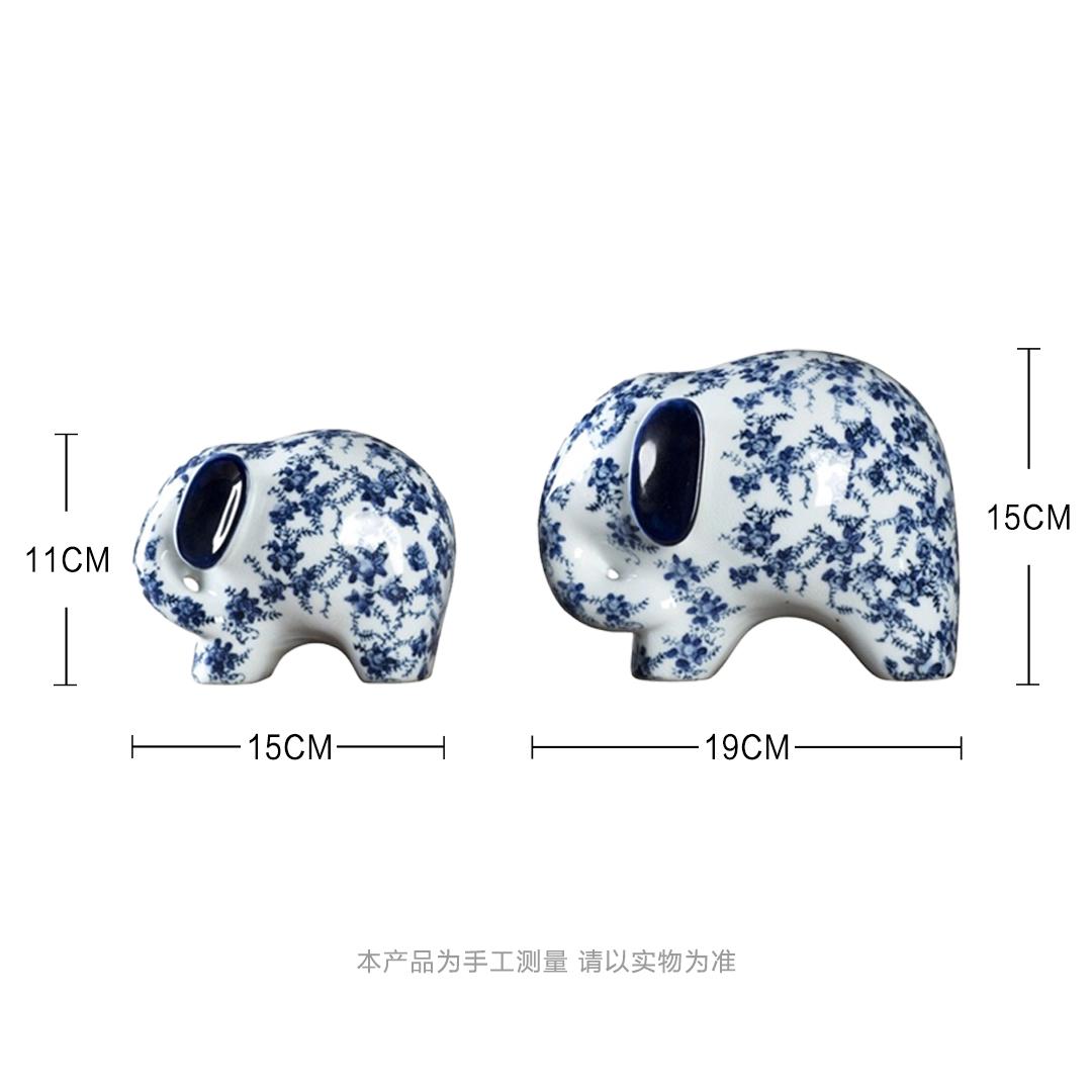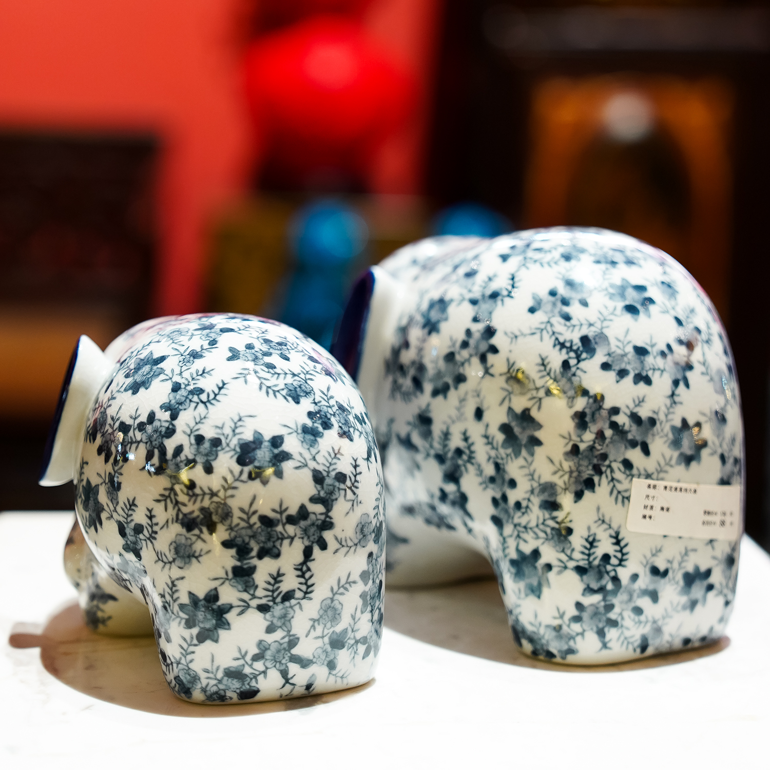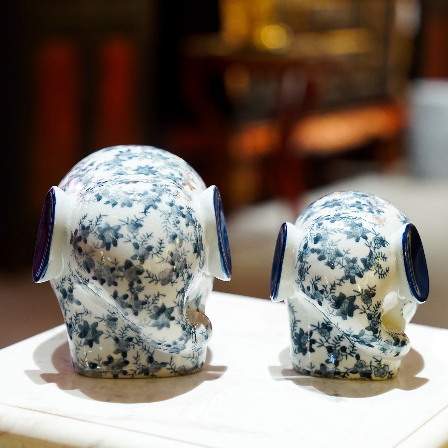 【本尼家】青花瓷高档大象一对中式陶瓷家居客厅玄关摆件