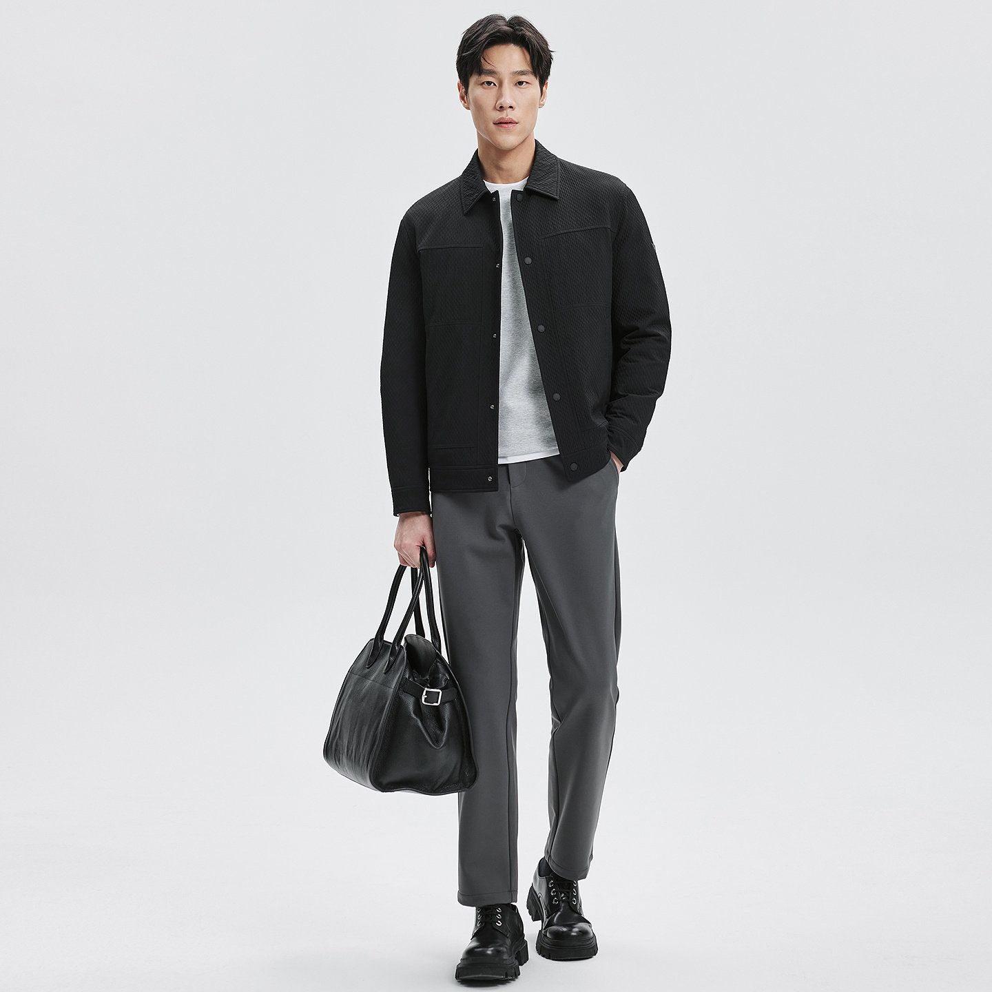 [防泼水]七匹狼短装翻领肌理提花薄羽绒夹克2025秋冬新款商务外套