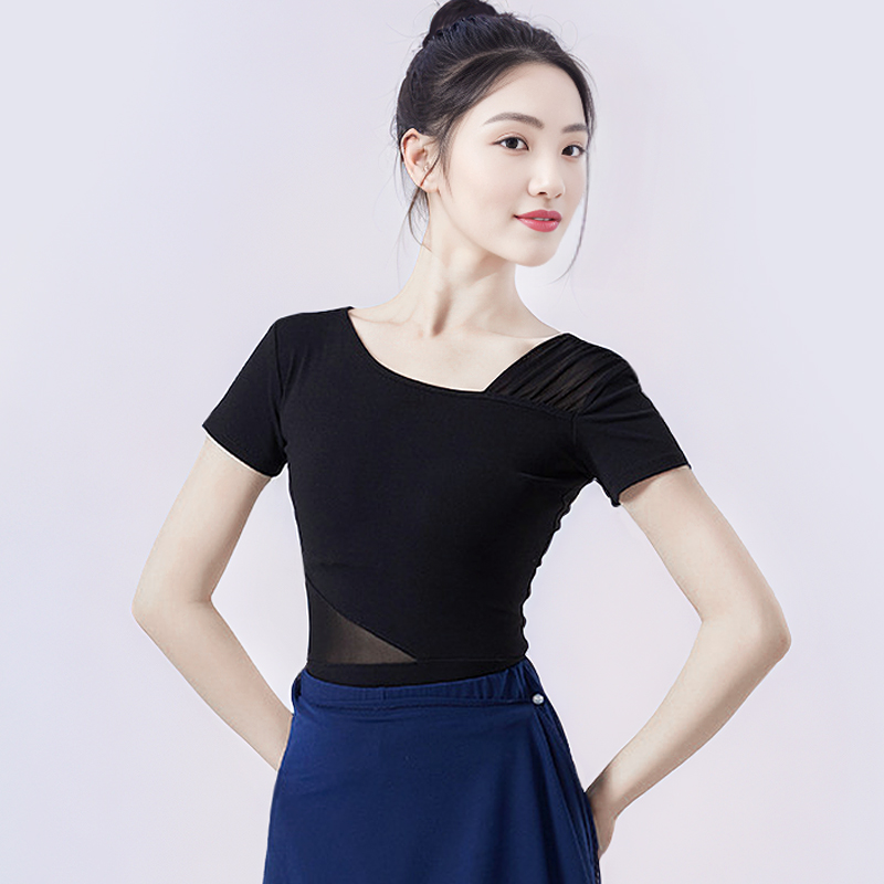 拉丁舞蹈上衣女国标舞服成人专业新款网纱拼接现代舞古典舞练功服
