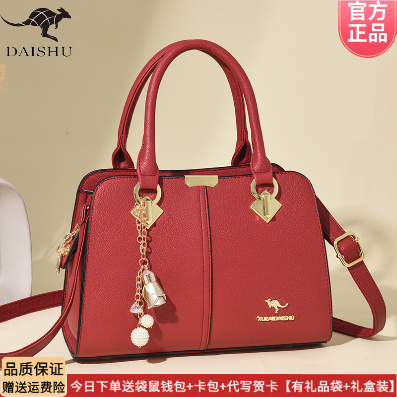 袋鼠手提包女2025新款妈妈软皮斜挎包生日礼物送女友送老婆礼盒装