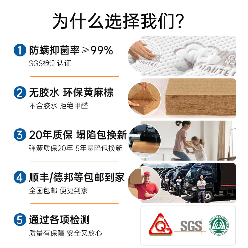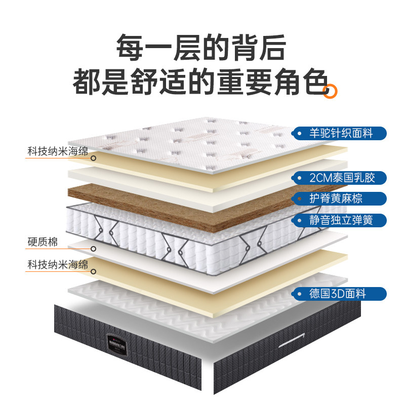 海马亦言床垫席梦思1.8m双人软硬两用椰棕乳胶独立弹簧床垫1.5米